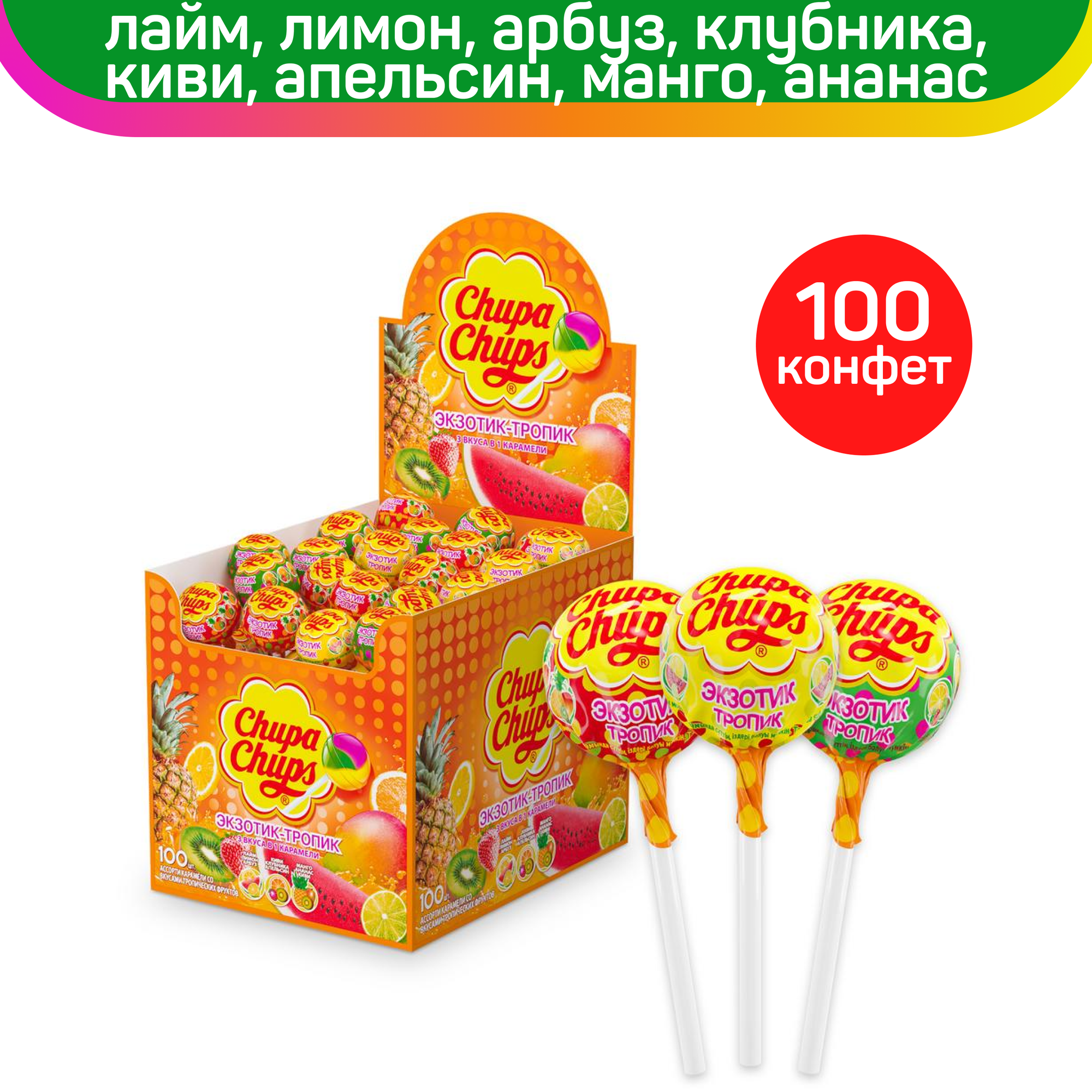 Купить Карамель Chupa Chups Экзотик Тропик,100шт х 12гр., Россия