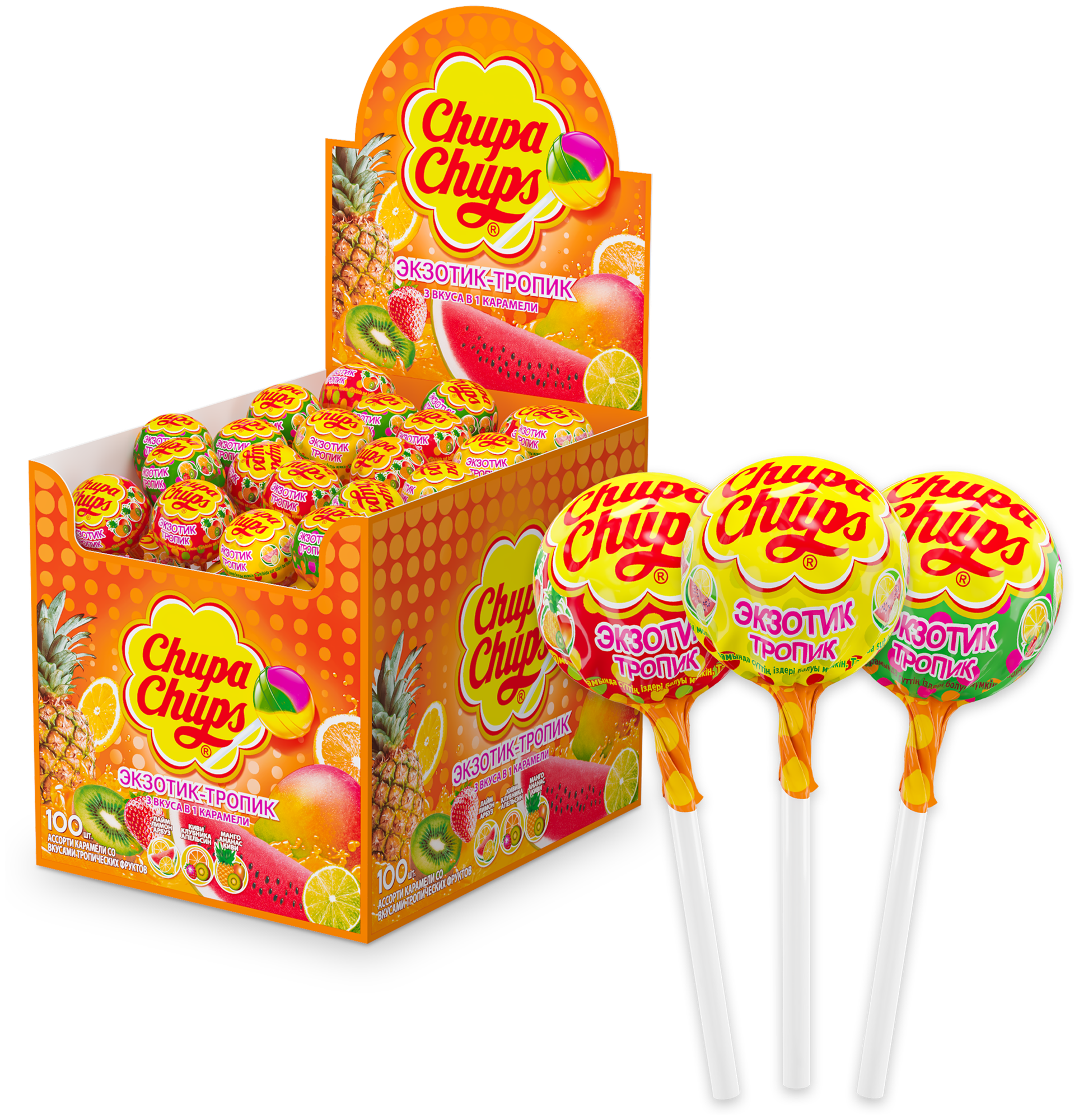 Чупа Чупс Экзотик-Тропик карамель на палочке 12г 100шт