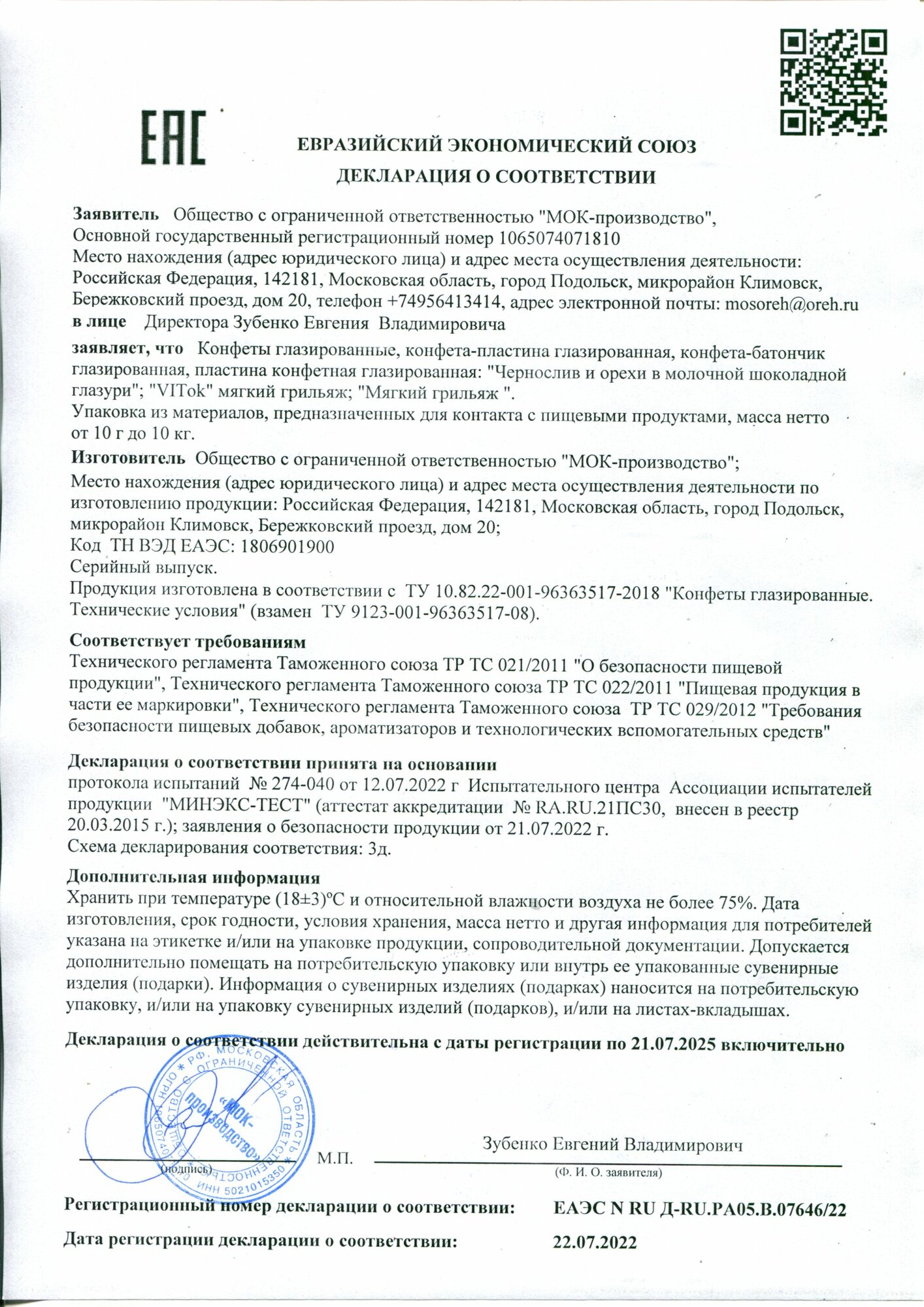 | Стандарты производства | ТУ 10.82.22-001-96363517-2018 |