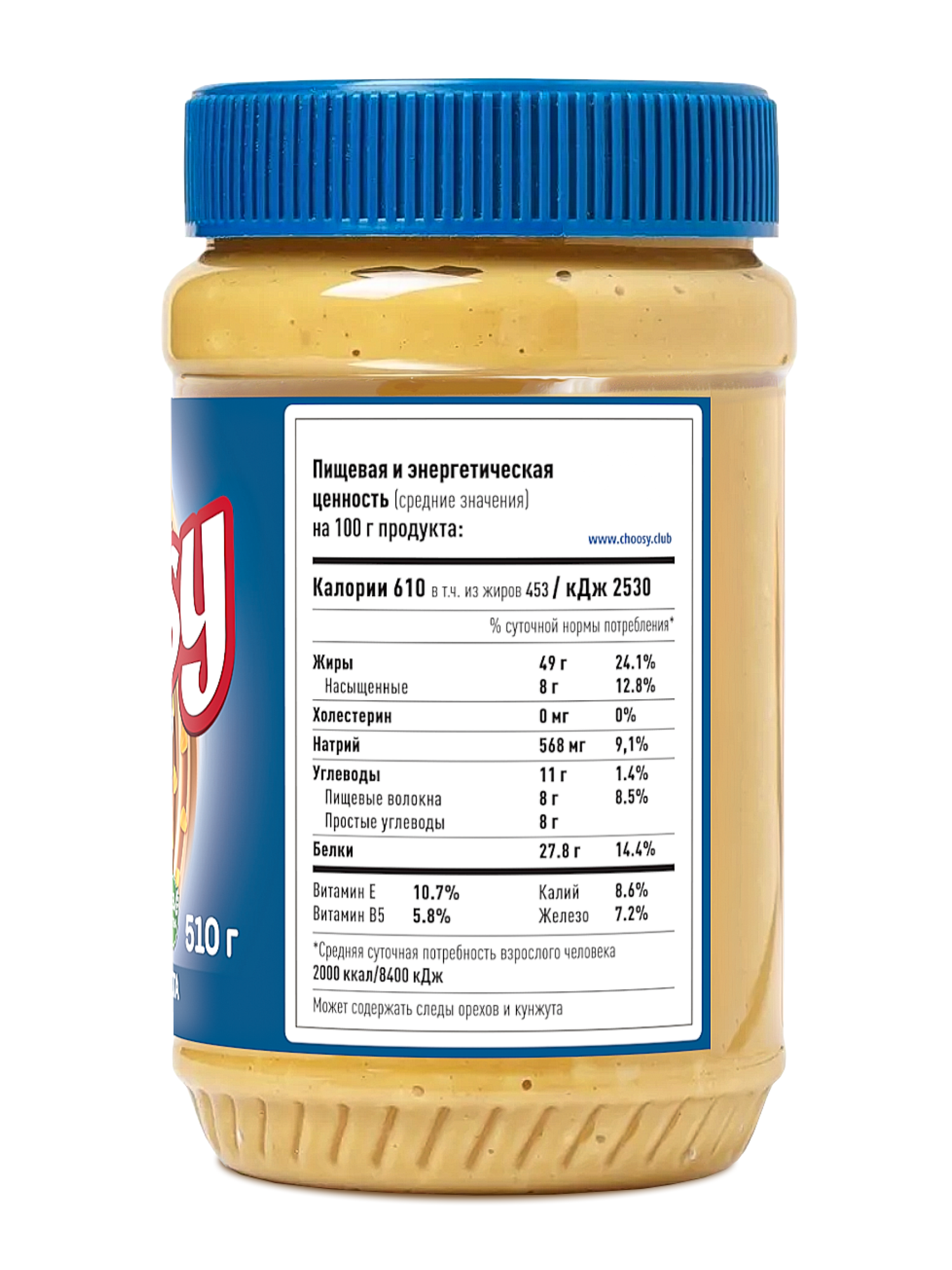 Арахисовая паста Choosy Crunchy с кусочками арахиса интересное: