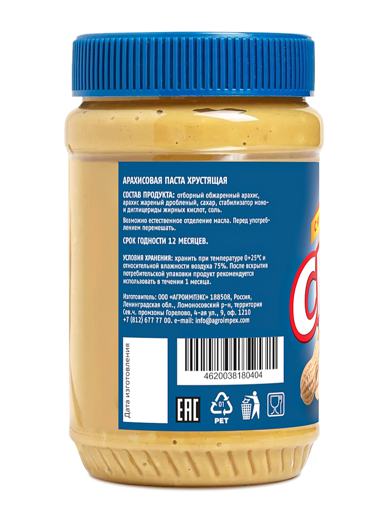 | Состав | Арахис жареный, Арахис жареный дробленый, сахар, соль, моно- и диглицериды жирных кислот. |