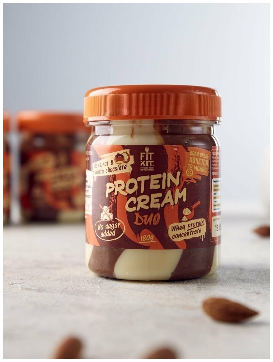 FIT KIT Шоколадно-фундучная паста Protein Cream DUO 180 г без сахара с белым шоколадом ,спортивное питание , полезные сладости интересное: