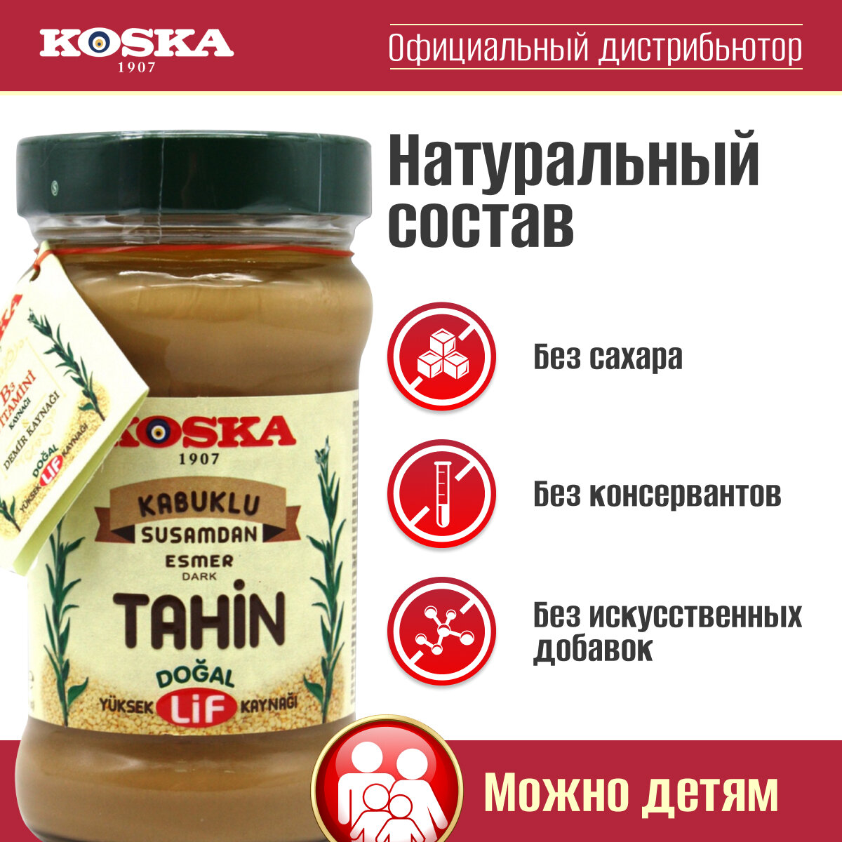 Паста кунжутная Koska тахини темная, 300 г / Ореховая паста