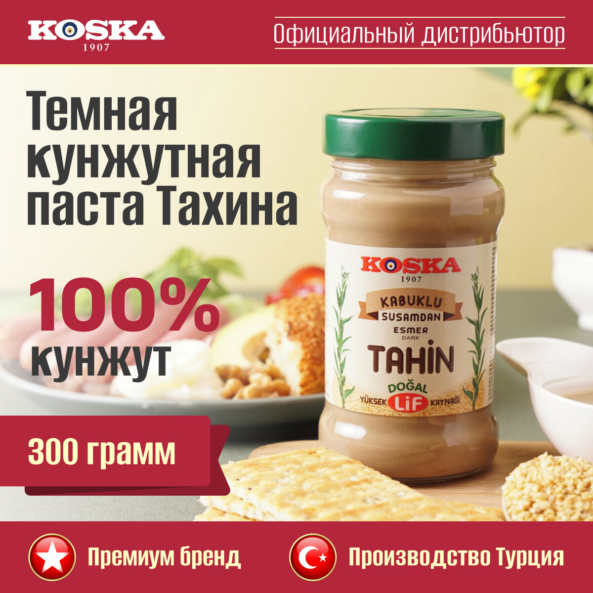 Паста кунжутная Koska тахини темная из необработанного кунжута, 300 г / Ореховая паста