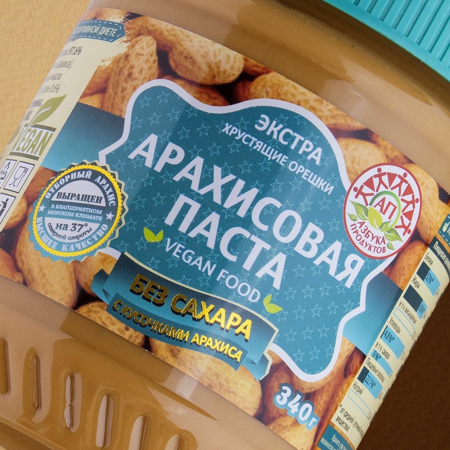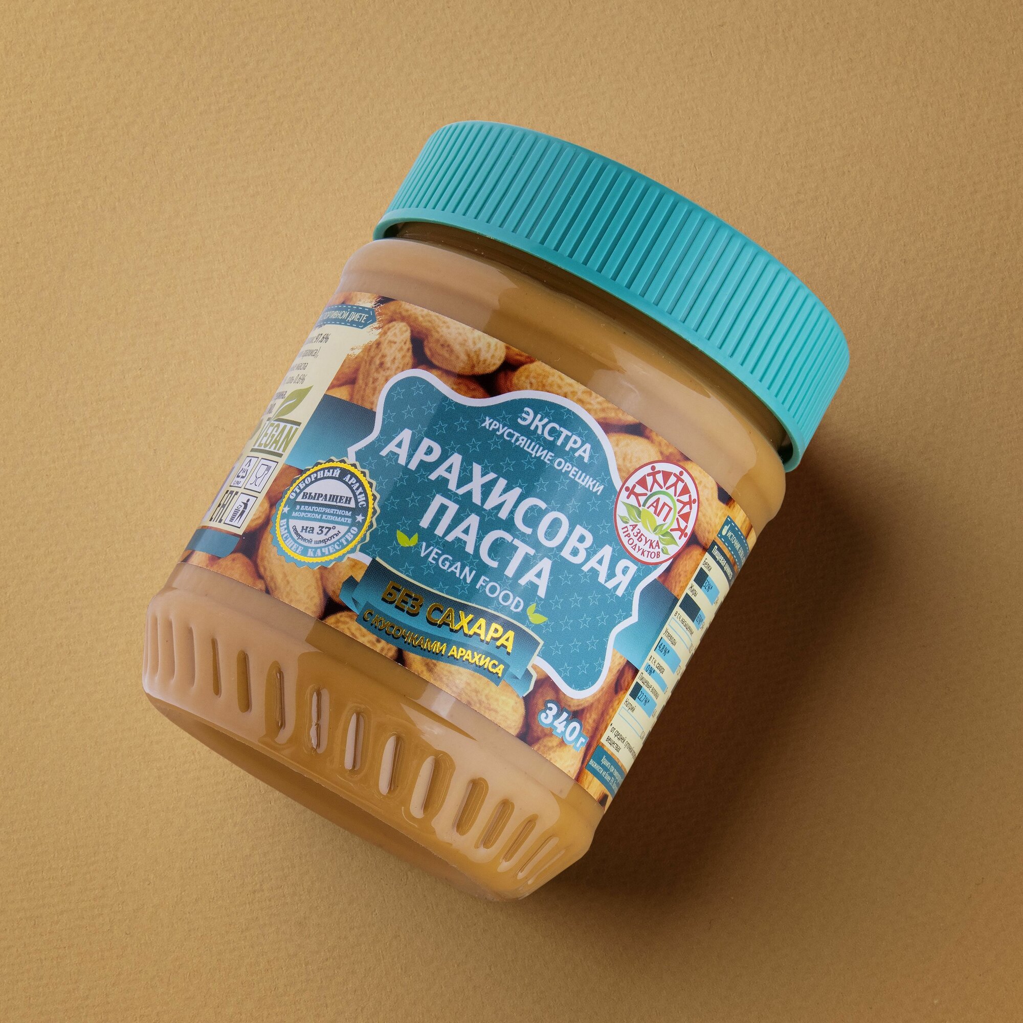 Арахисовая паста без сахара с кусочками арахиса азбука продуктов экстра, 340гр интересное: