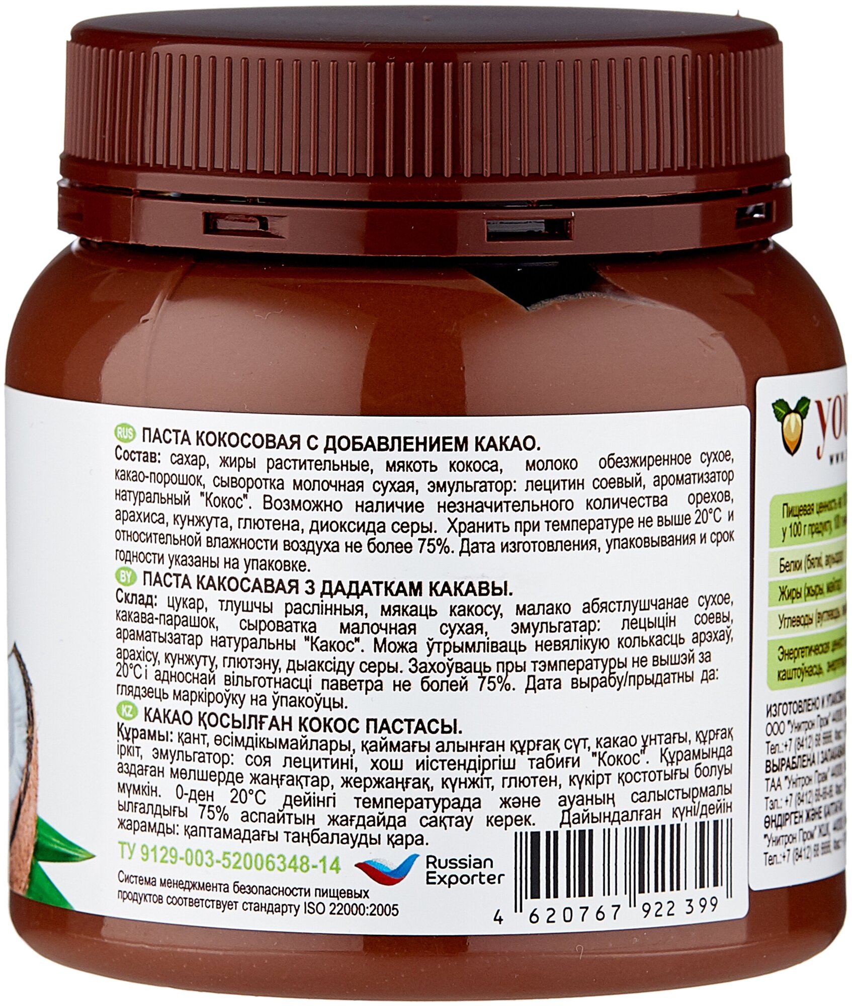 Кокосовая паста с добавлением какао Your nut, 250 гр. интересное: