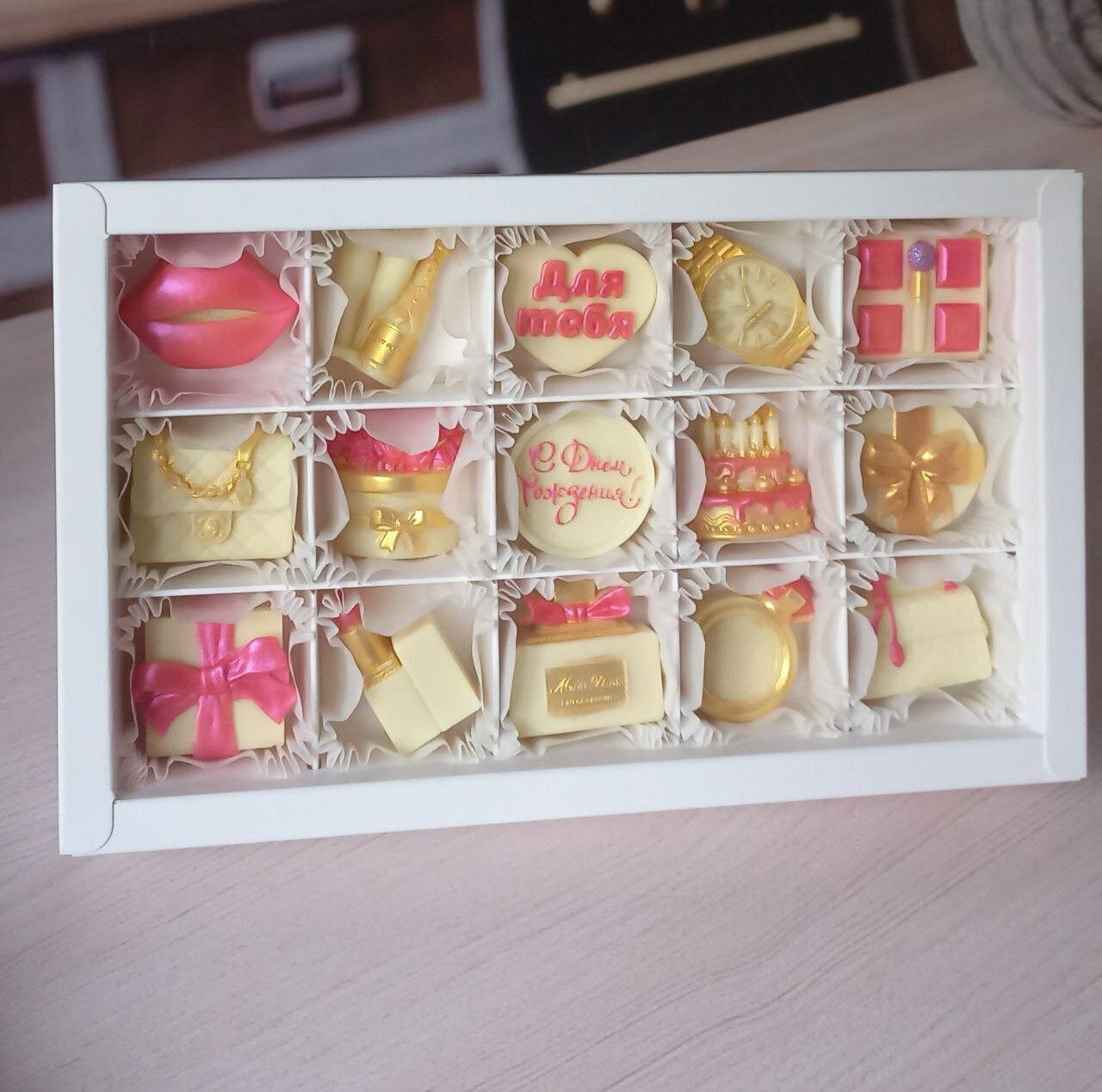 Шоколадный набор для девушки в подарочной упаковке интересное: