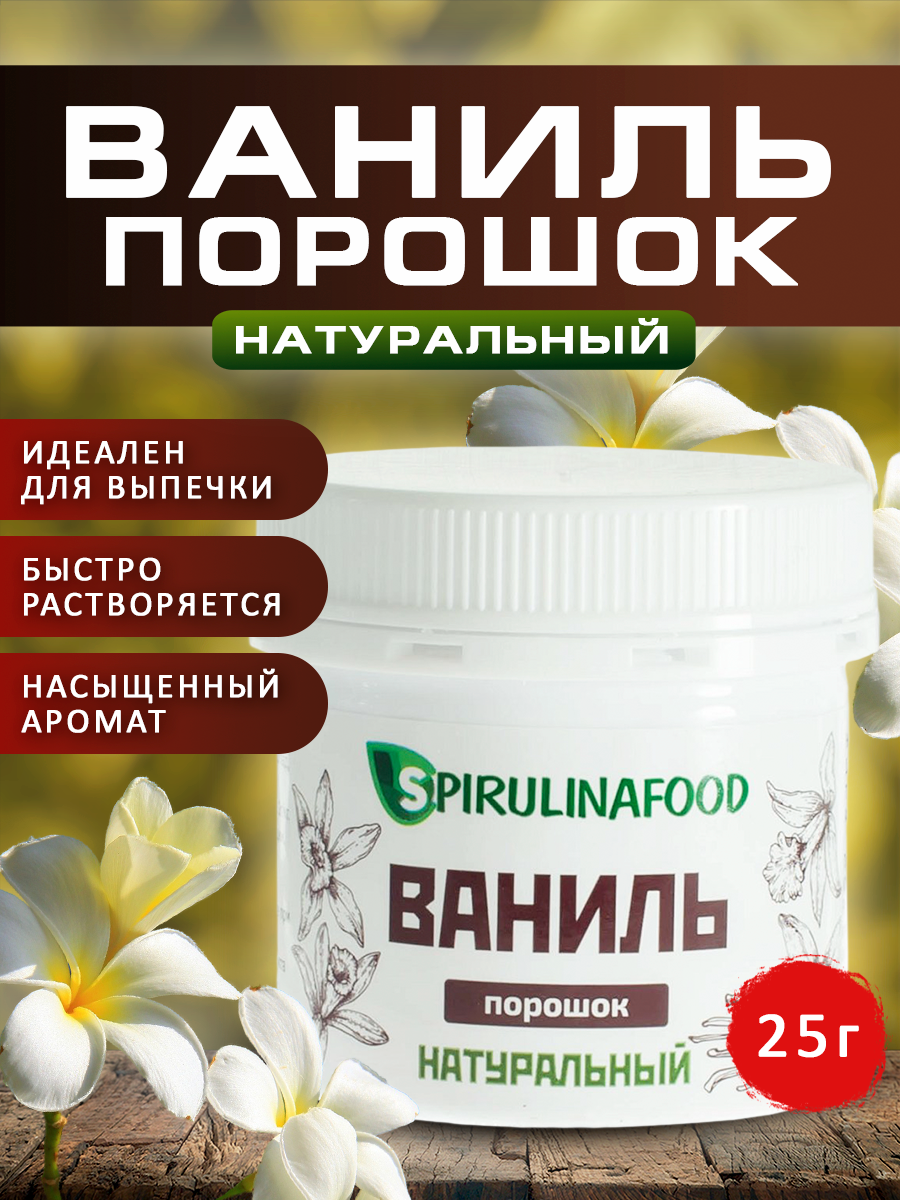 | Дополнительная информация | Специальный способ обработки позволяет от цветка ванили получить наичистейший порошок ванили, который белого цвета |
