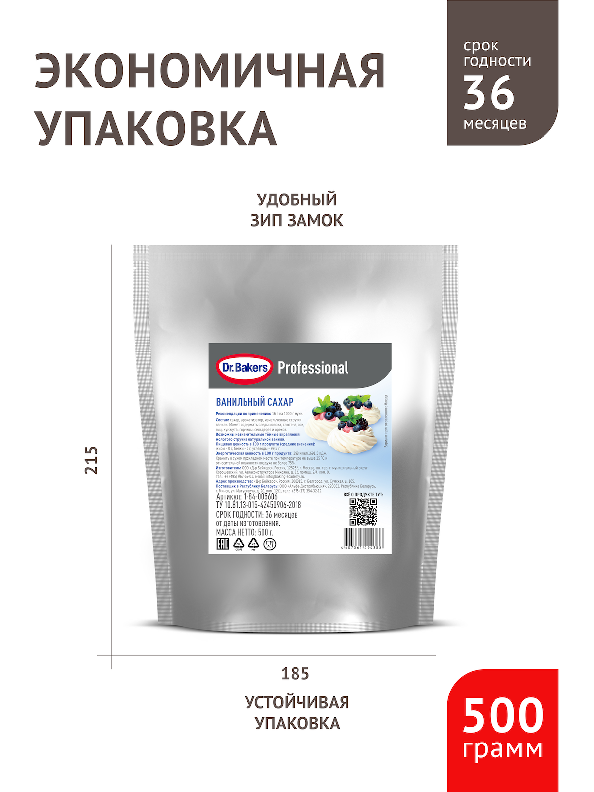 Ванильный сахар Dr. Bakers Professional, 500г интересное: