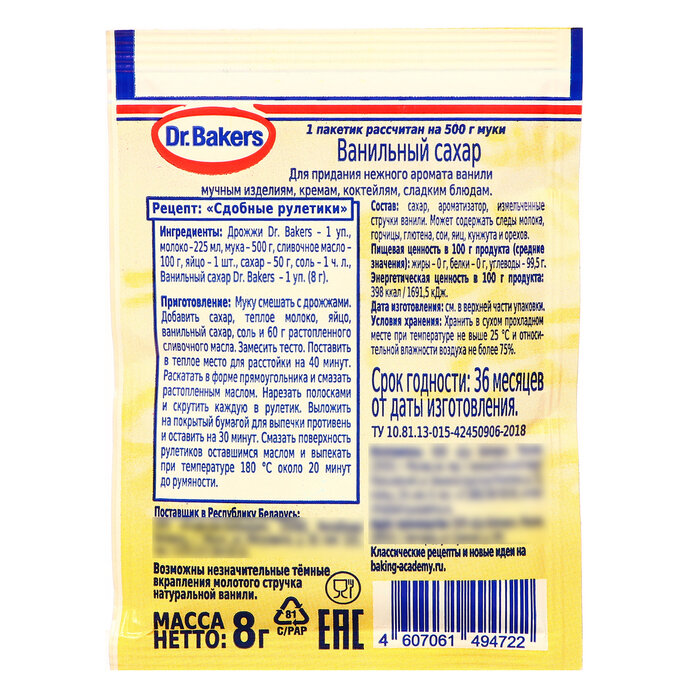 | Дополнительная информация | пакетик рассчитан на 500 г муки или 0,5 л молока |