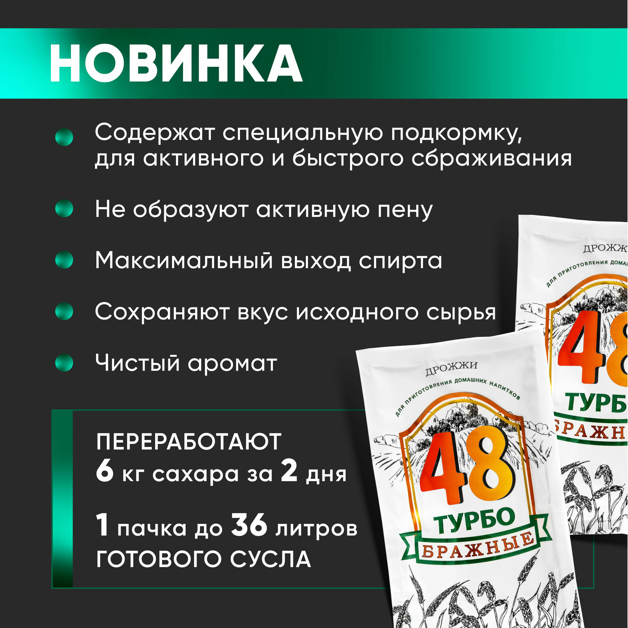 Бражные Турбо дрожжи 48 часов. Для изготовления самогона, рома, кашаса, текилы, виски. Набор 5 шт. по 130 г.