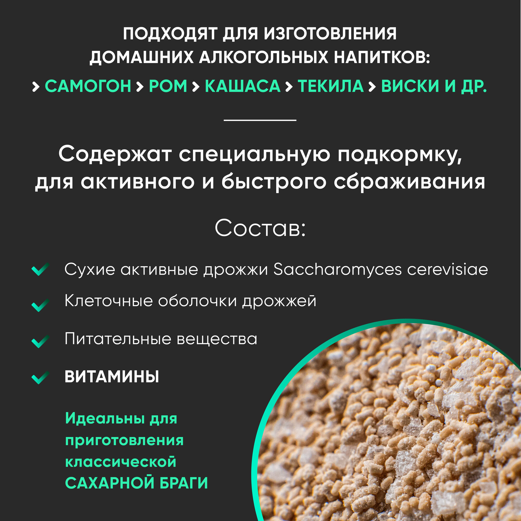 Бражные Турбо дрожжи 48 часов. Для изготовления самогона, рома, кашаса, текилы, виски. Набор 20 шт. по 130 г.