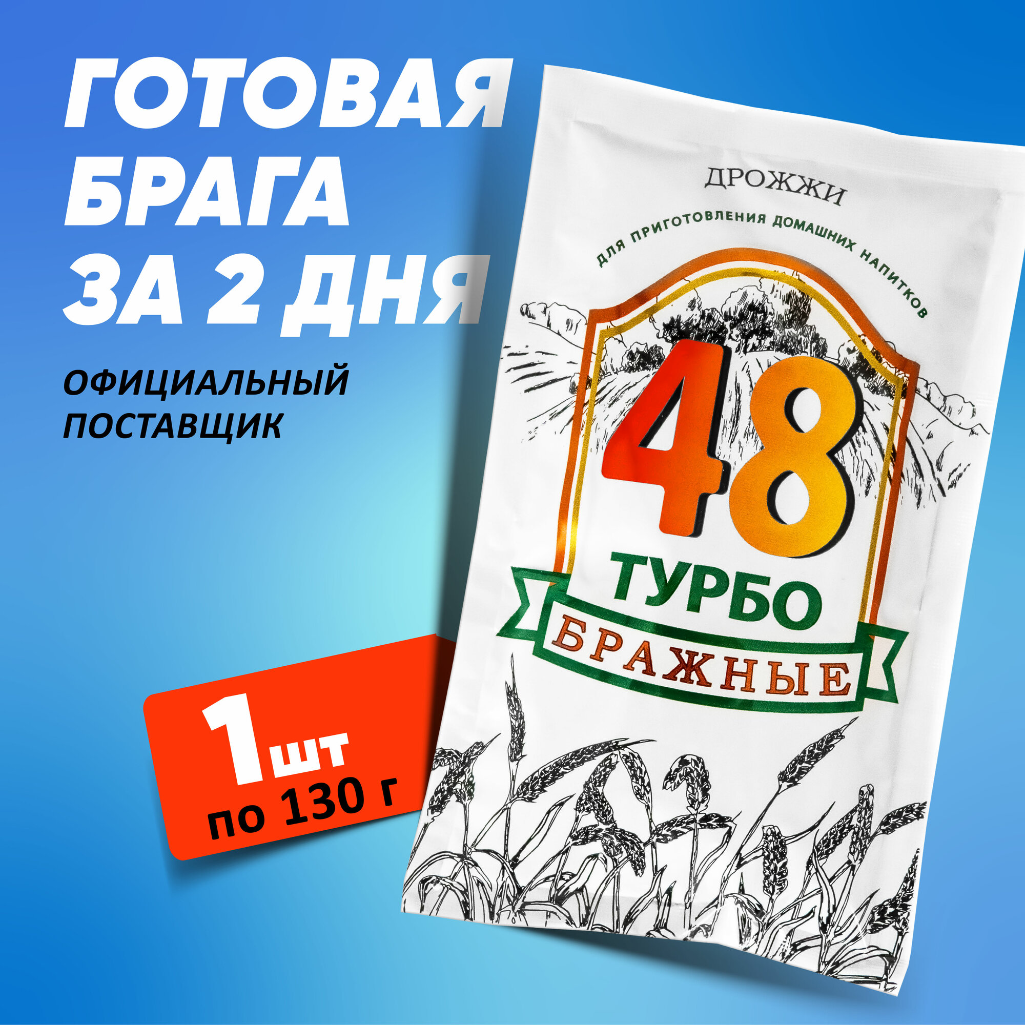 Бражные Турбо дрожжи 48 часов. Для изготовления самогона, рома, кашаса, текилы, виски. 1 шт. 130 г.