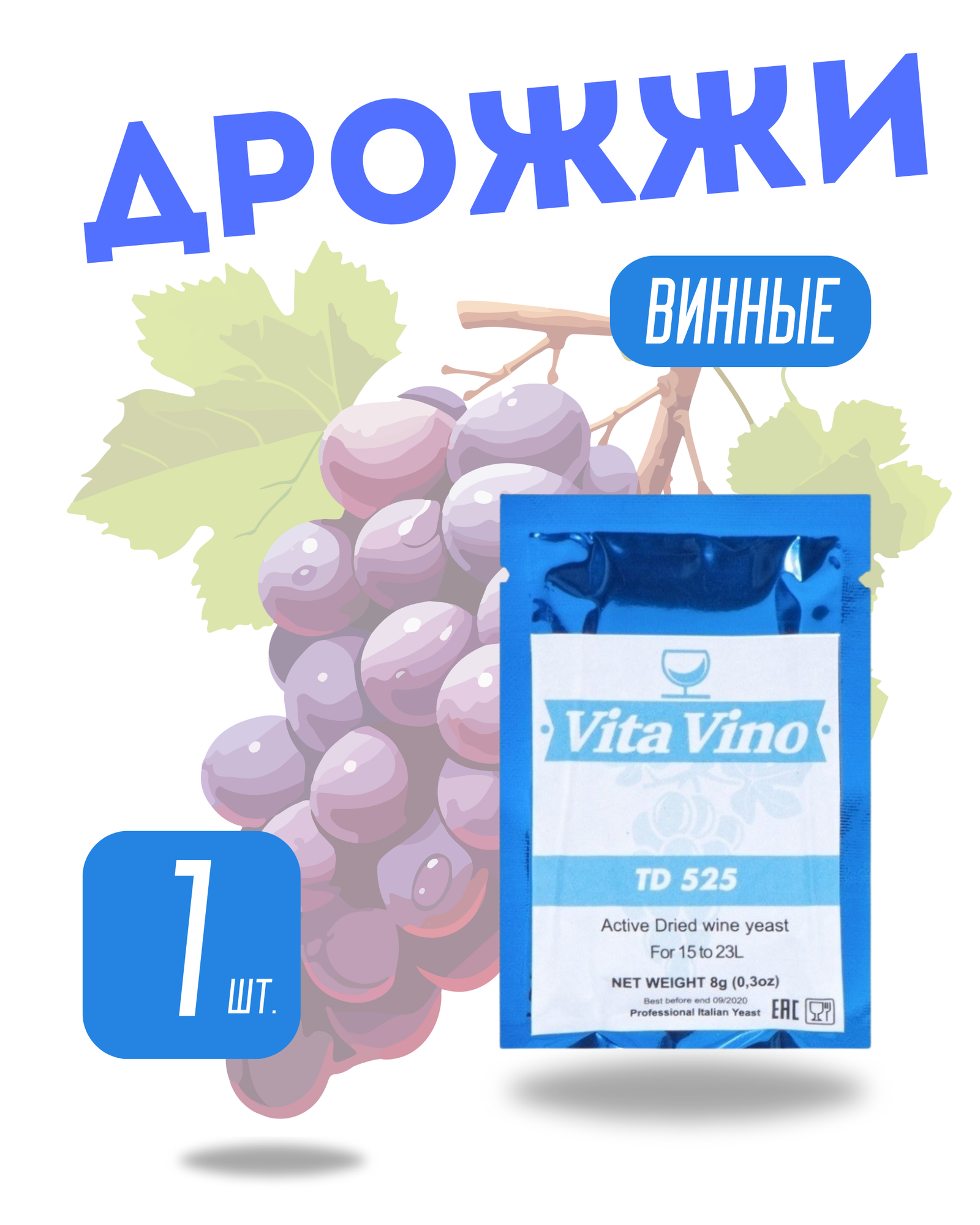 Дрожжи винные Vita Vino TD-525, 1 упаковка интересное: