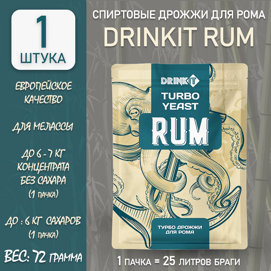 Дрожжи Ром Drinkit Turbo Rum Yeast 72г интересное: