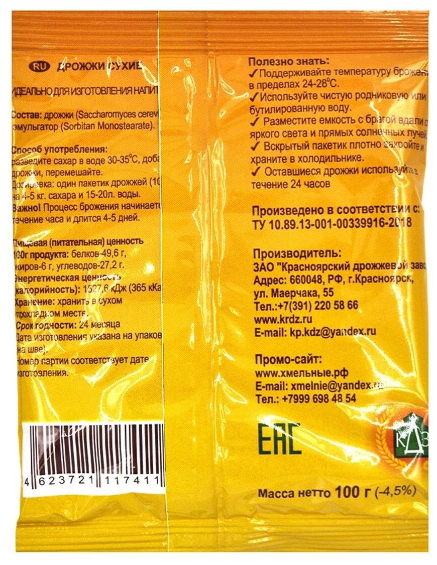 Спиртовые дрожжи Хмельные Красноярские 10 х100 гр. Дрожжи для браги, Дрожжи для самогона интересное: