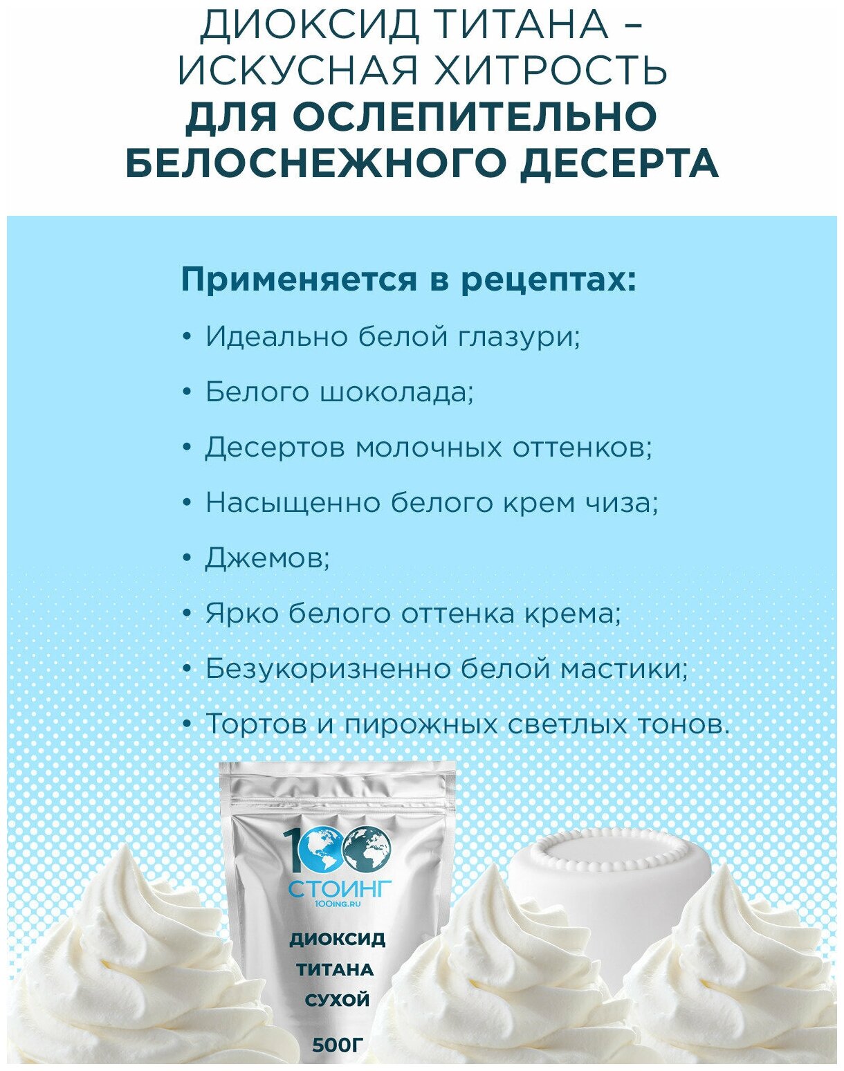 Краситель пищевой белый "Диоксид титана" (Е171) 500 гр стоинг / STOING интересное:
