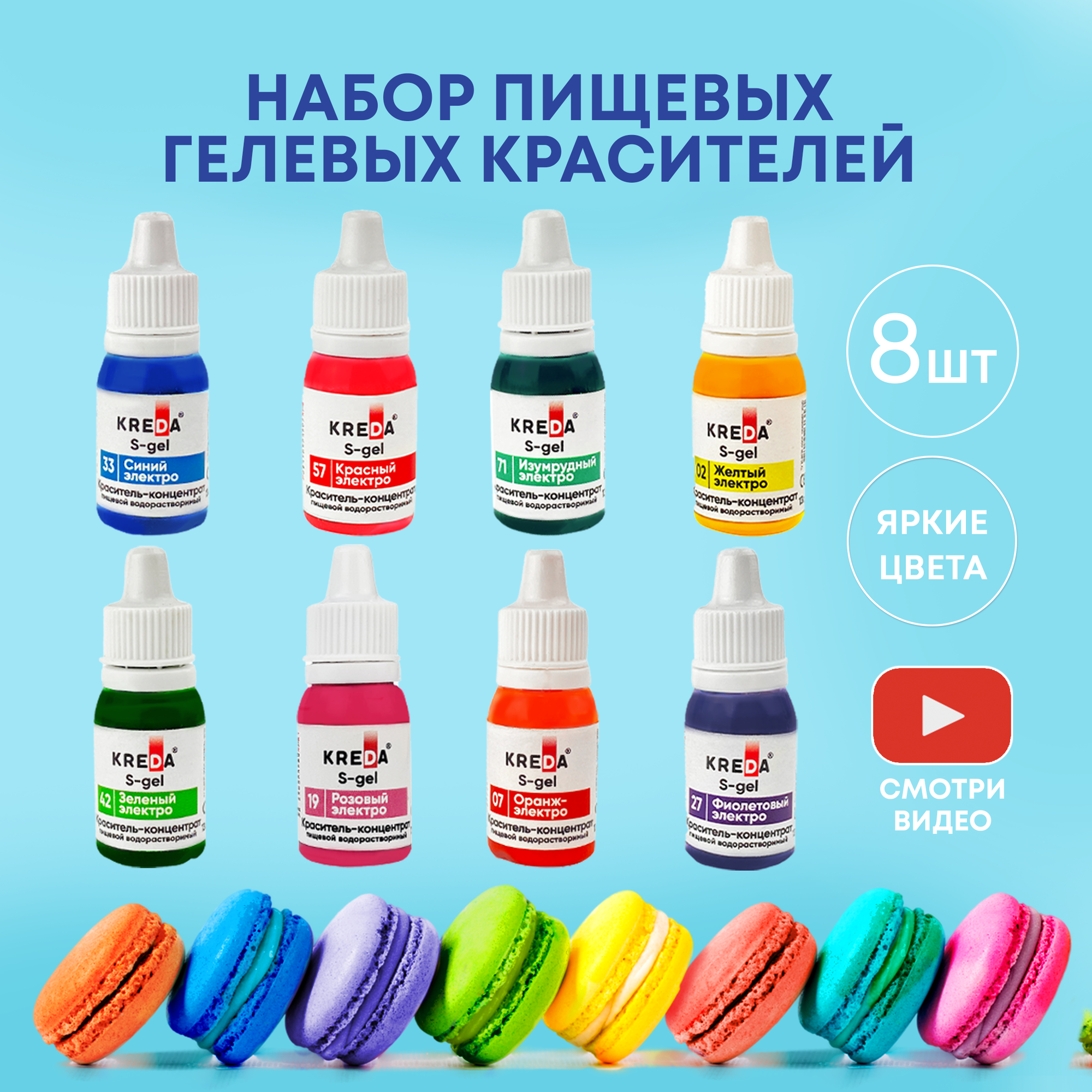 Набор пищевых красителей Organic Brand 8 цветов по 10 мл/ красители водорастворимые гелевые интересное: