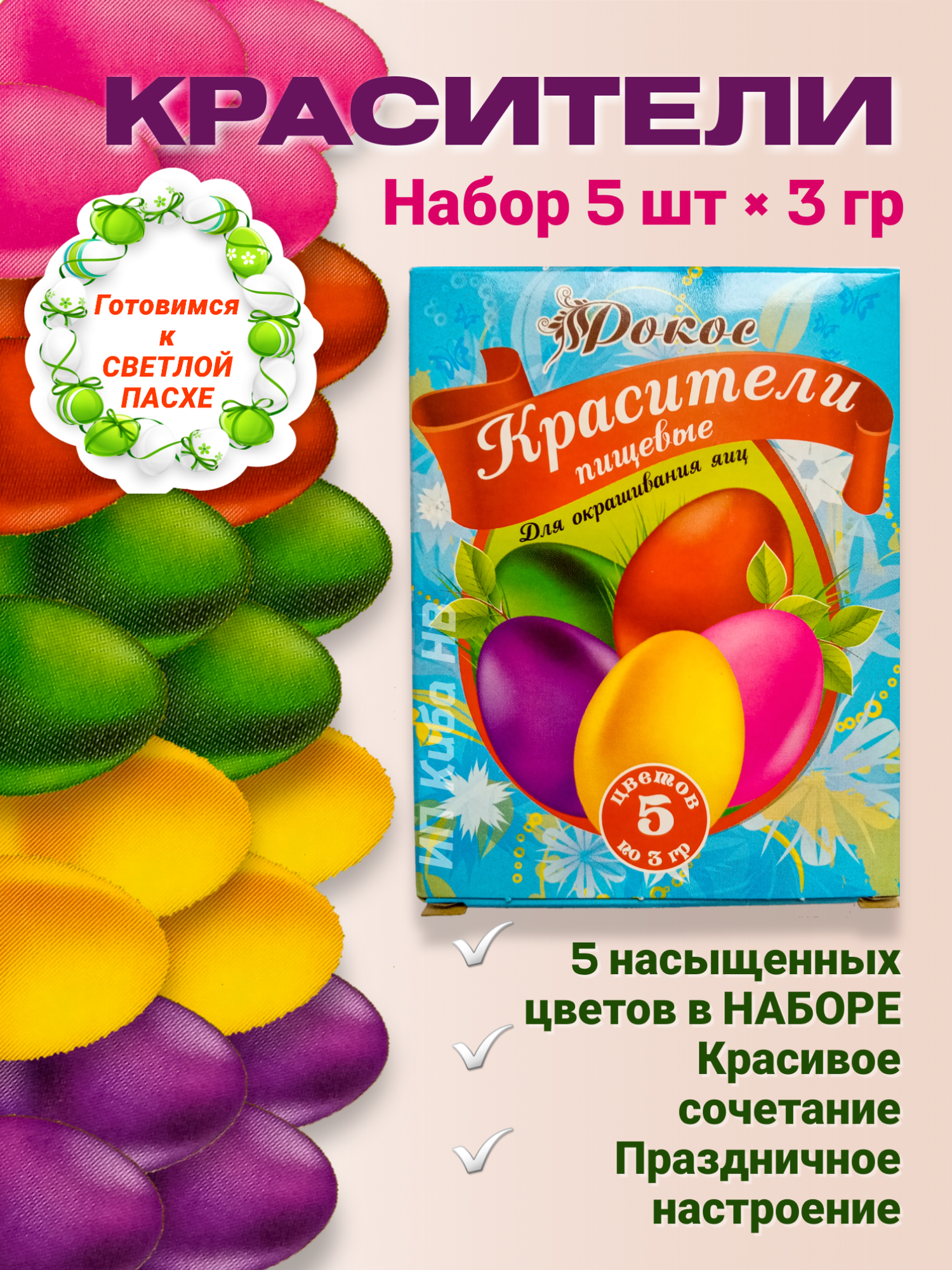 Набор пищевых красителей сухих для яиц 5шт по 3г интересное: