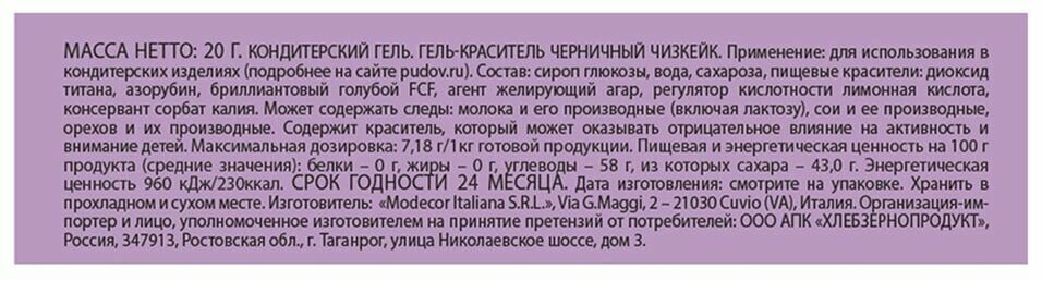 Гель-краситель пищевой PASTEL Черничный чизкейк С.Пудовъ, Италия, 20 г интересное: