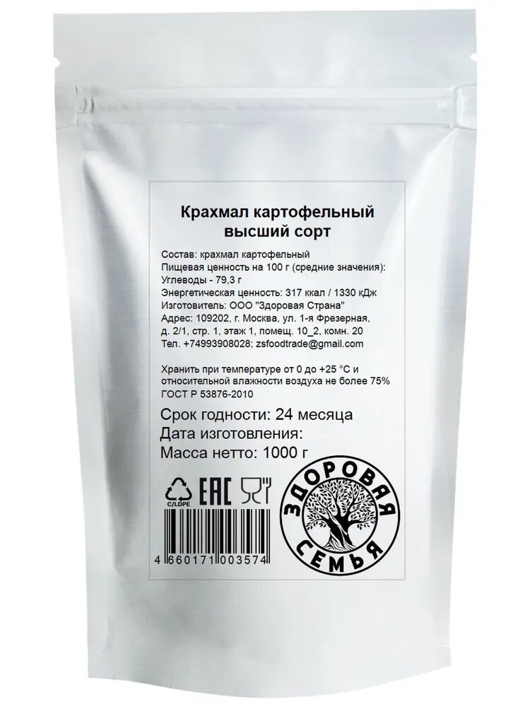 Крахмал картофельный загуститель без глютена, Здоровая Семья, 1 кг (1000 г) интересное:
