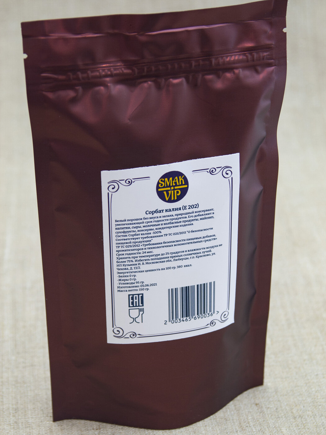 | Комплектация | Консервант сорбат калия (Е202) в дой паке с замком зип лок |