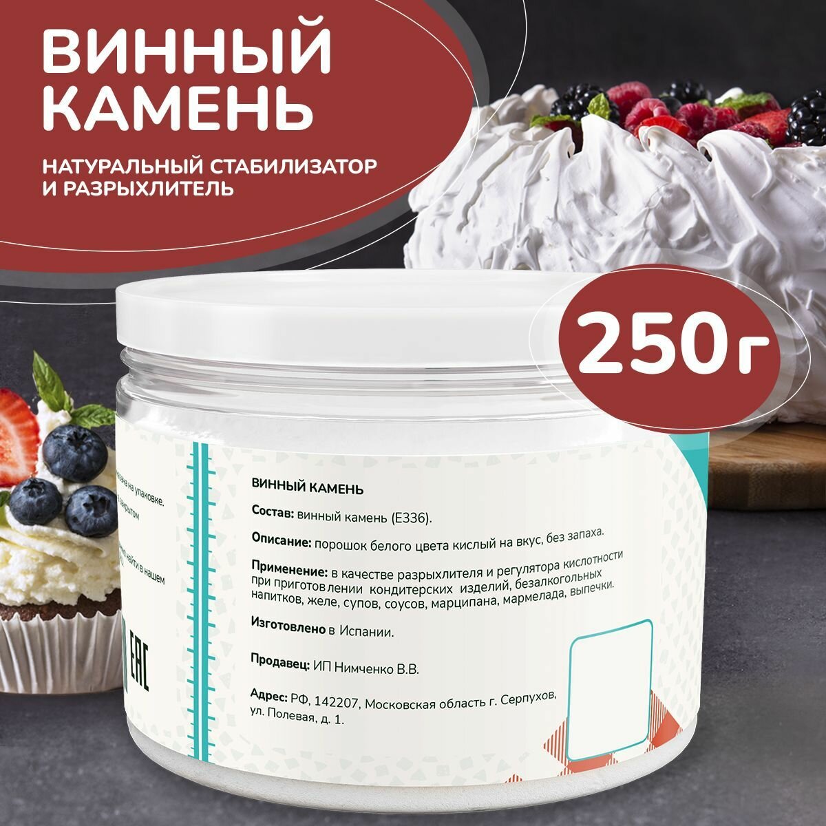 | Комплектация | Винный камень 100 грамм в пластиковой банке |