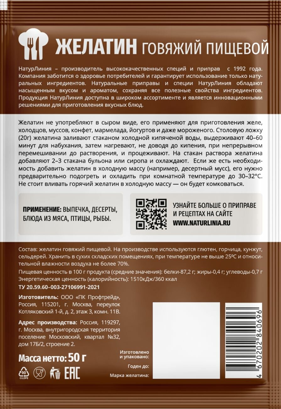 Желатин говяжий НатурЛиния 50 г*3 шт интересное: