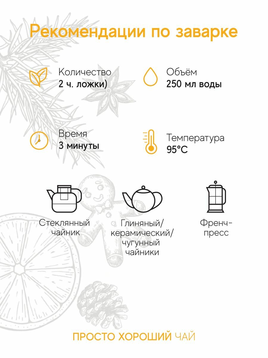| Способ приготовления | Температура воды 95 градусов, заварка 2 ч.л. на 250 мл. воды или 250 гр. на 1 л.воды |