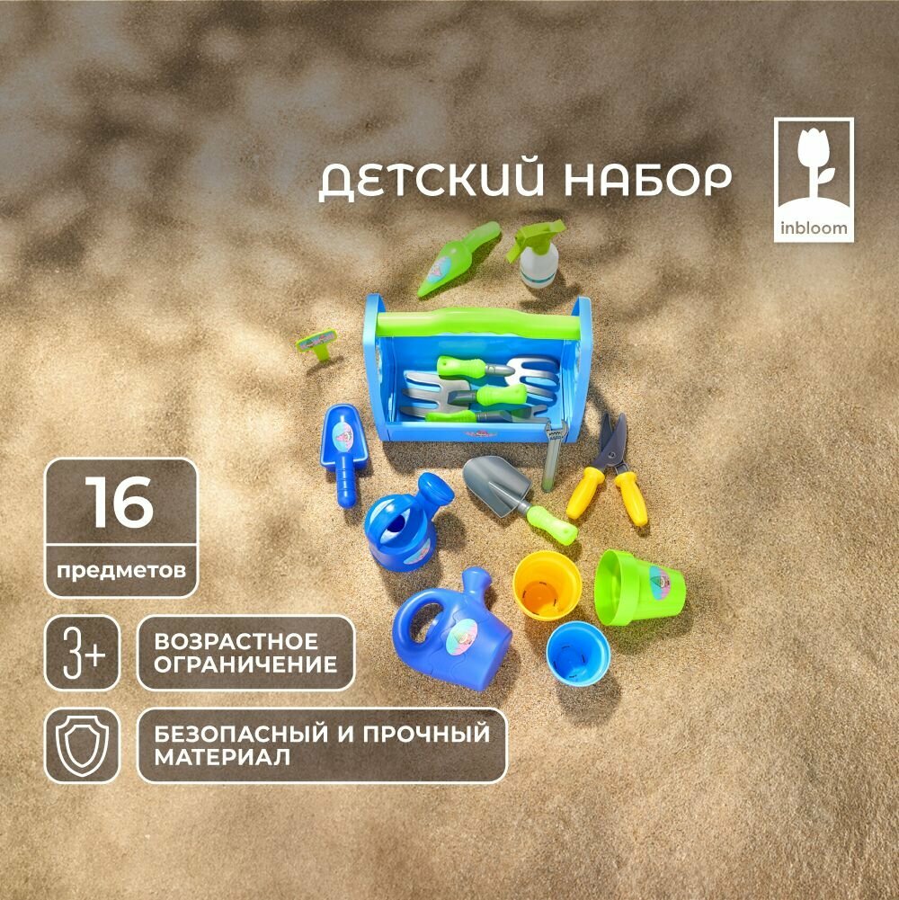 Садовый детский инструмент INBLOOM Дачное детство, 16 предметов, полипропилен