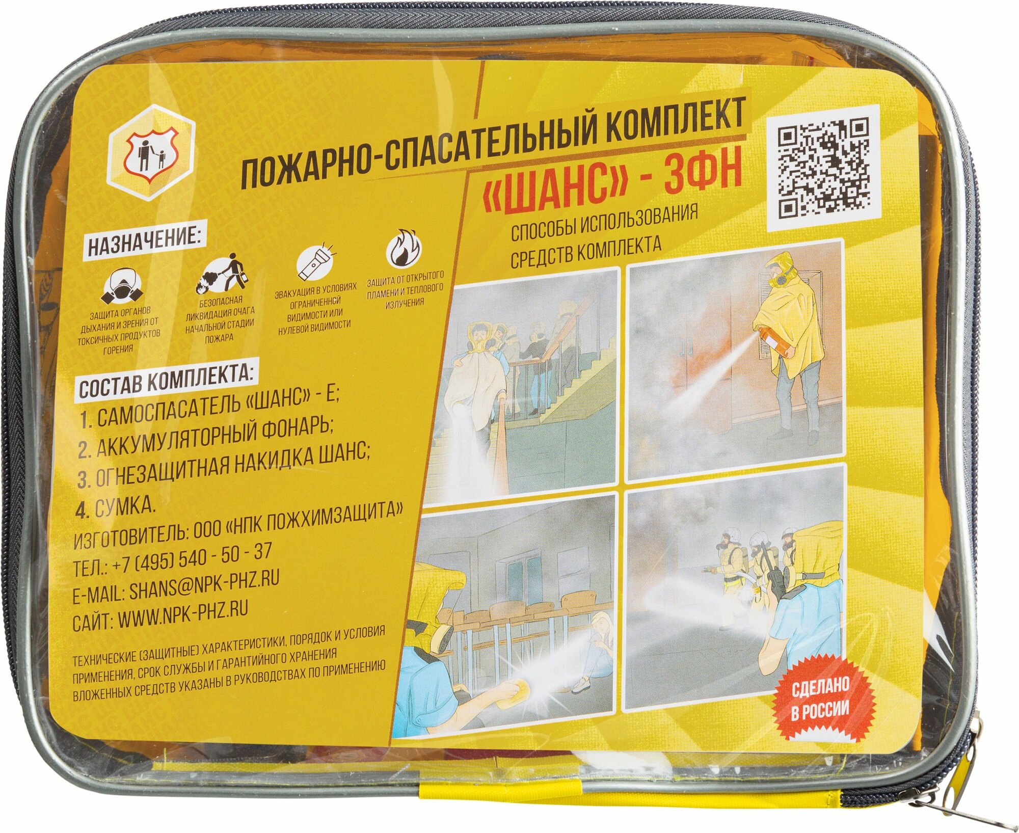 Пожарный комплект Шанс (самоспасатель, фонарь, накидка, сумка), от 30 минут защиты, -3ФН