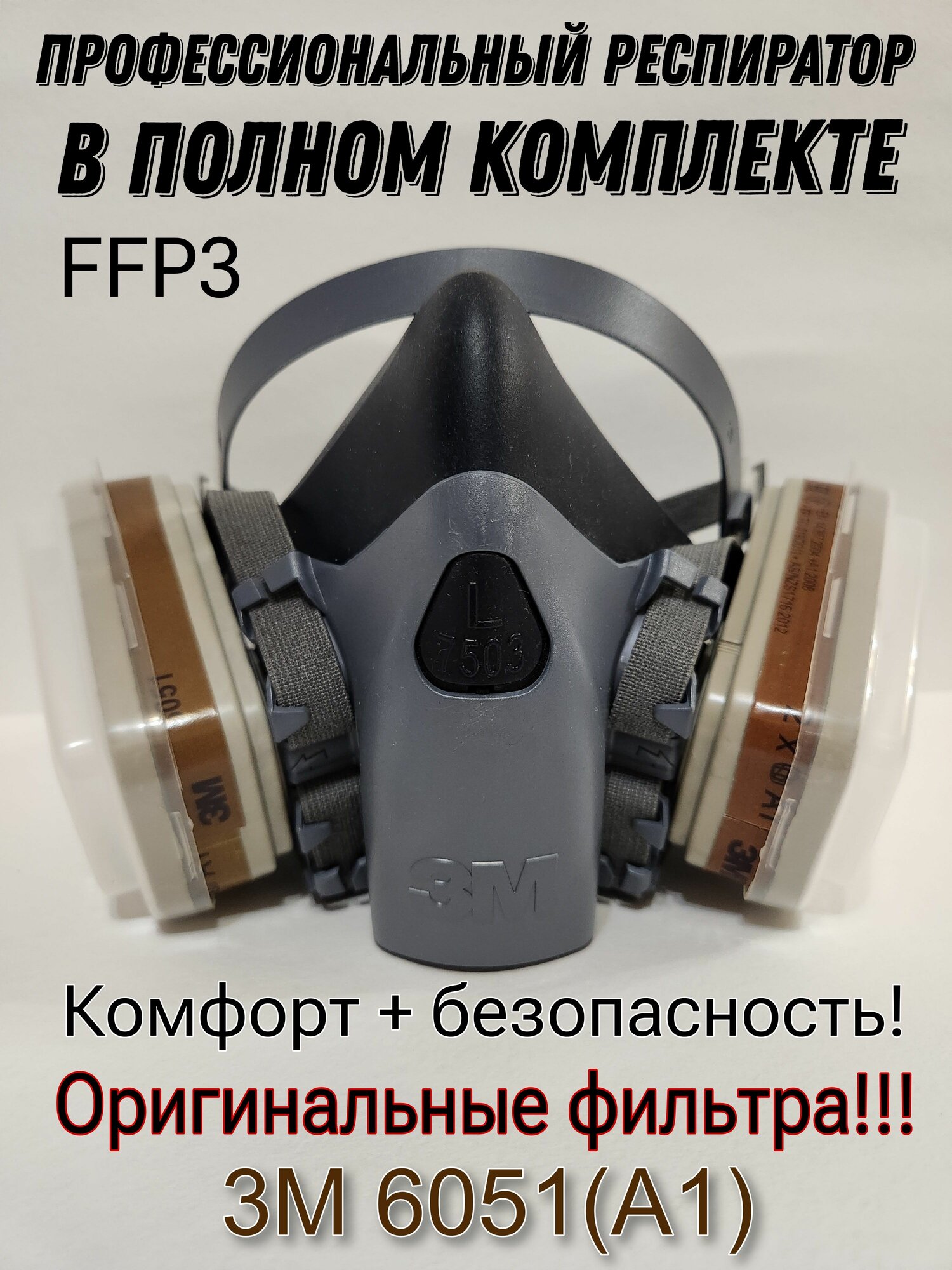 Профессиональный респиратор, маска 3М 7503 в комплекте с фильтрами 6051(А1) интересное: