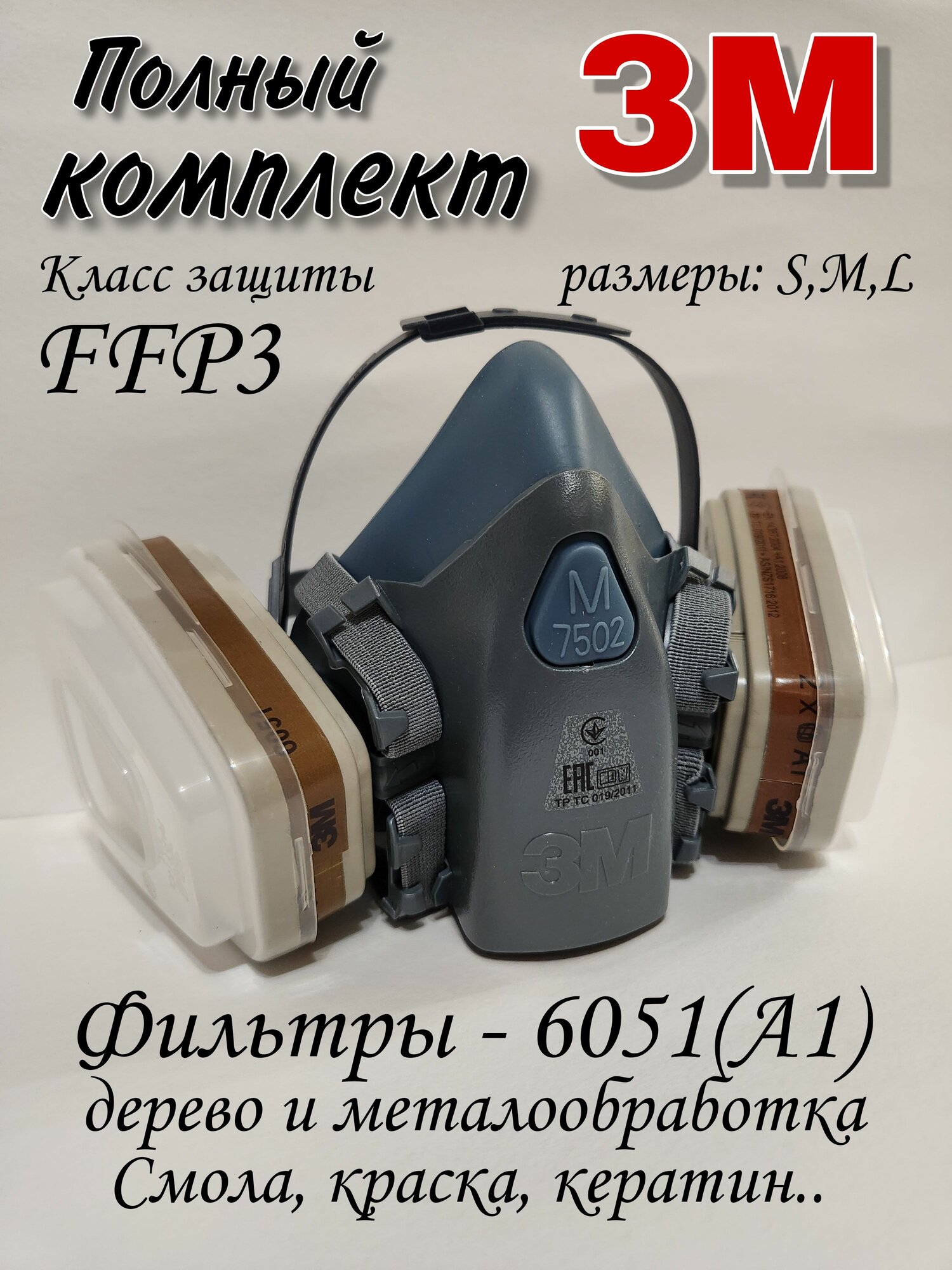 Профессиональный респиратор, маска 3М 7502 в комплекте с фильтрами 6051(А1) интересное:
