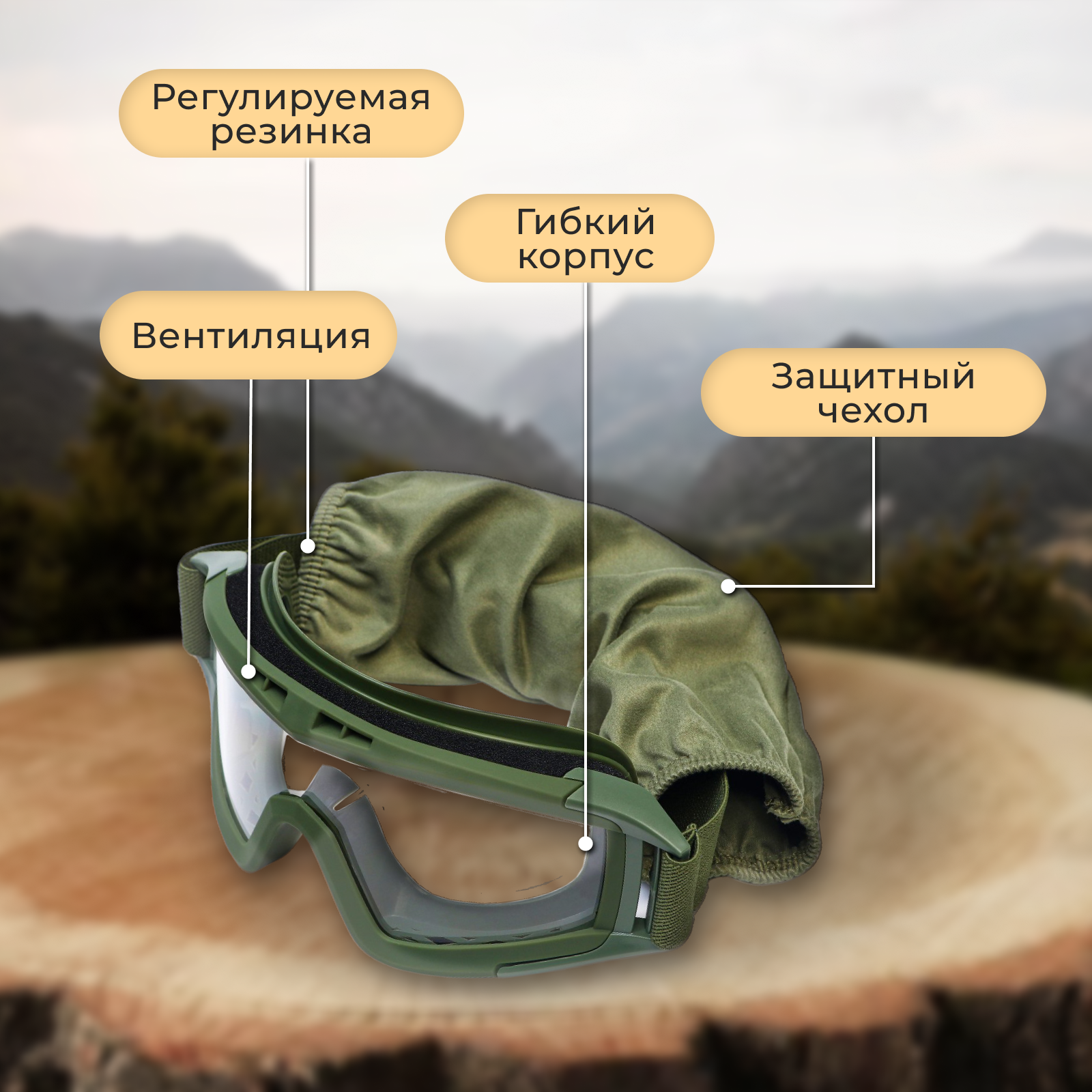 Очки защитные "Тактические" противоосколочные, на резинке, 20 х 10 см, цвет хаки, линзы прозрачные