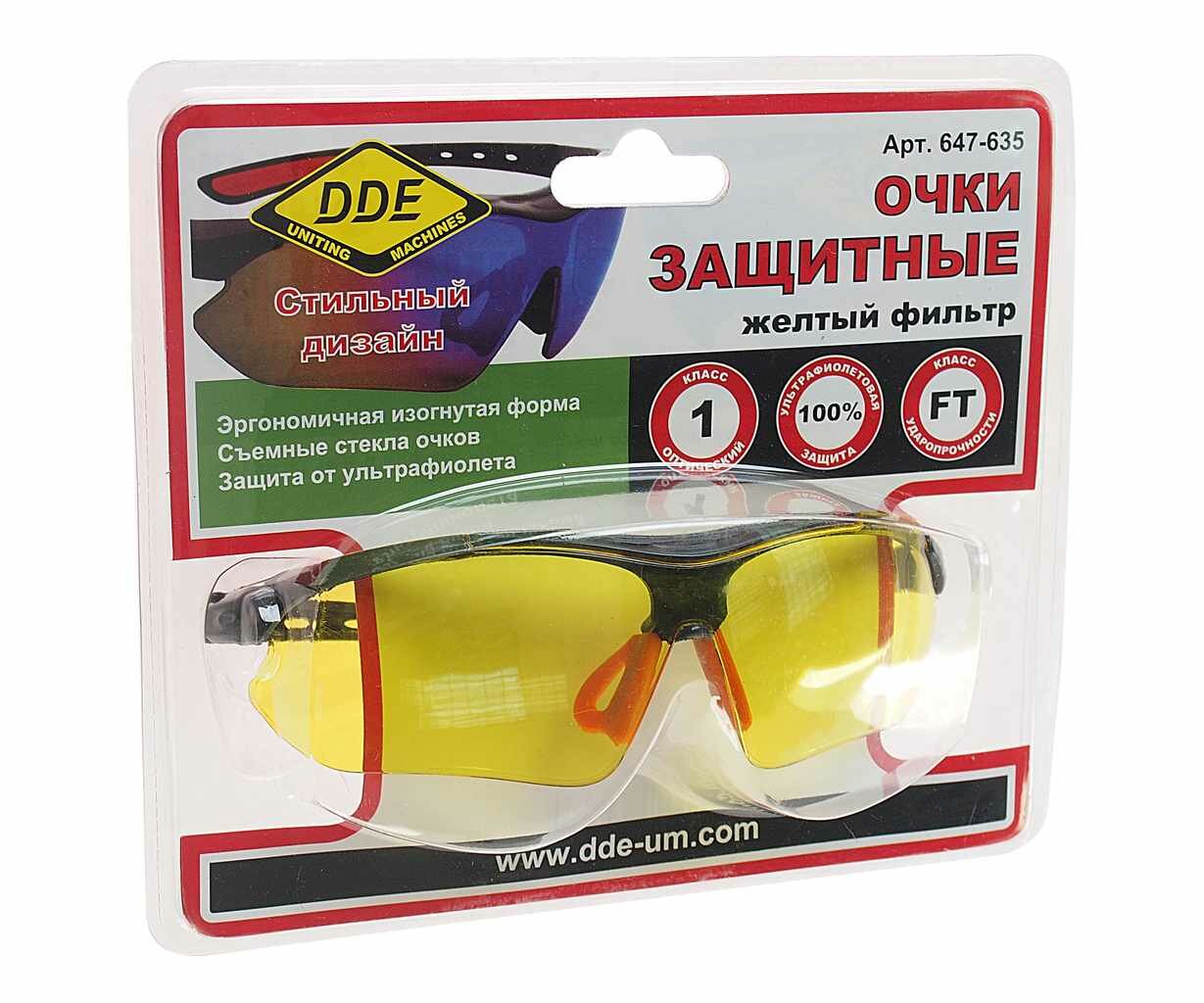 Очки защитные DDE с желтым светофильтром