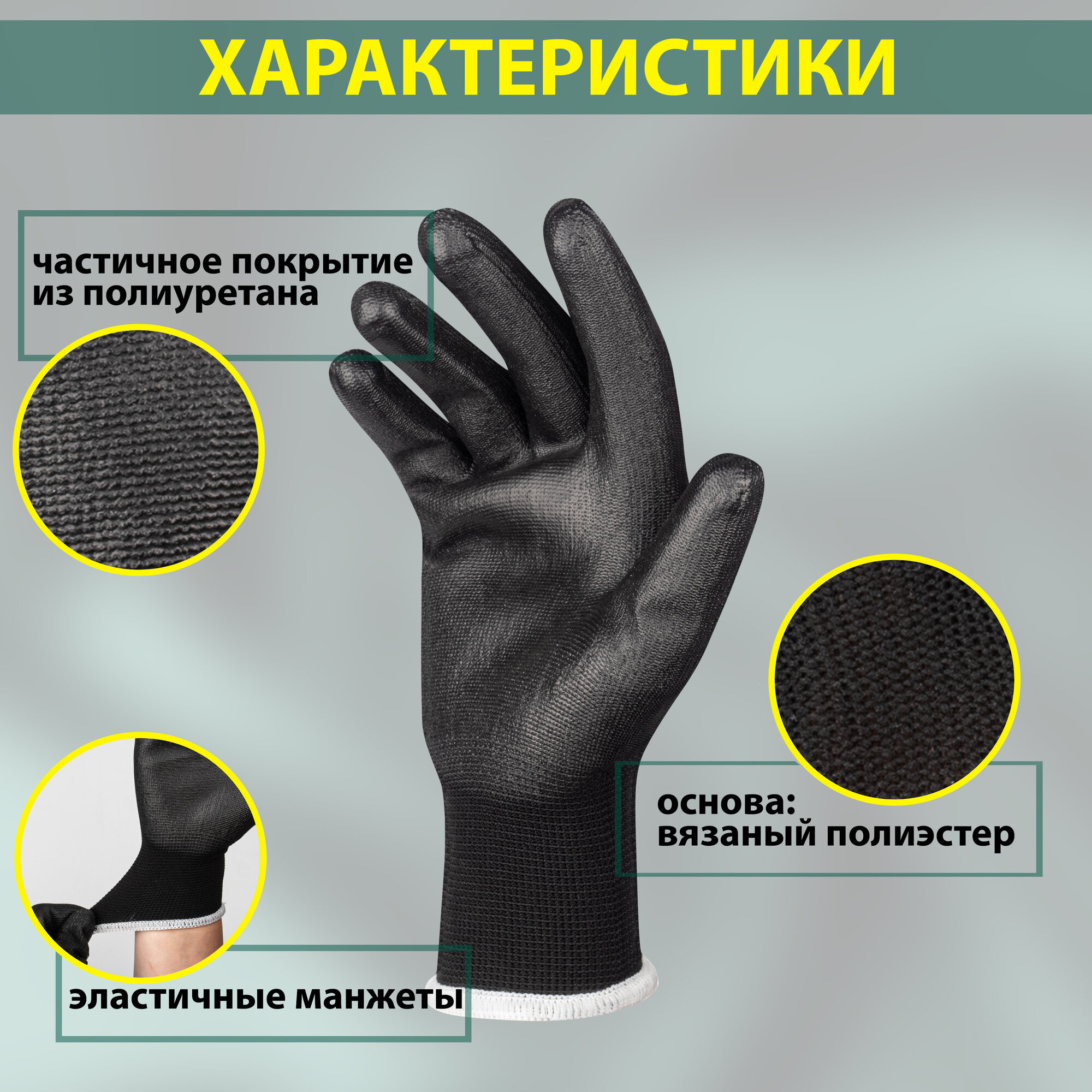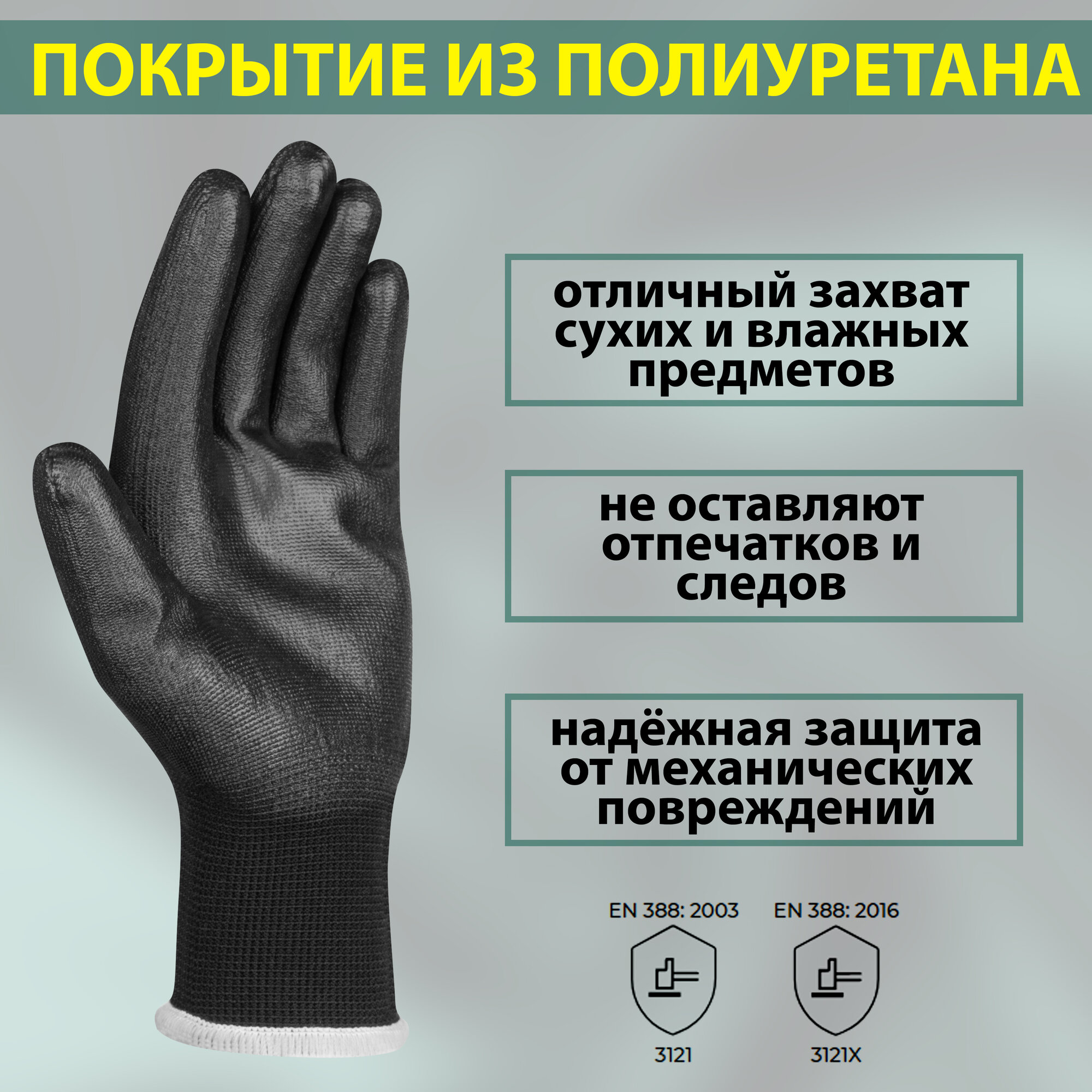 Перчатки рабочие Sapset Avior Black с покрытием из полиуретана, размер XL/10 - 5 пар