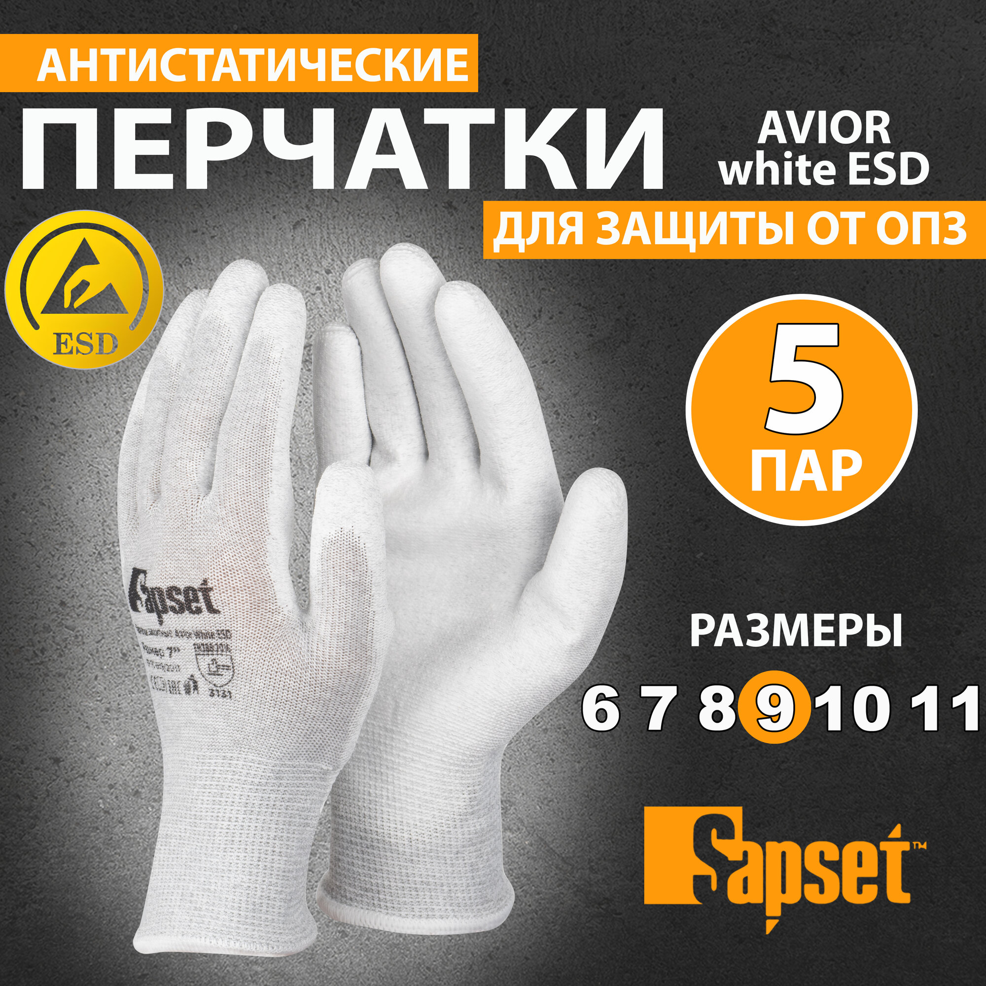 Перчатки рабочие антистатические Sapset Avior White ESD, размер L/9 - 5 пар интересное: