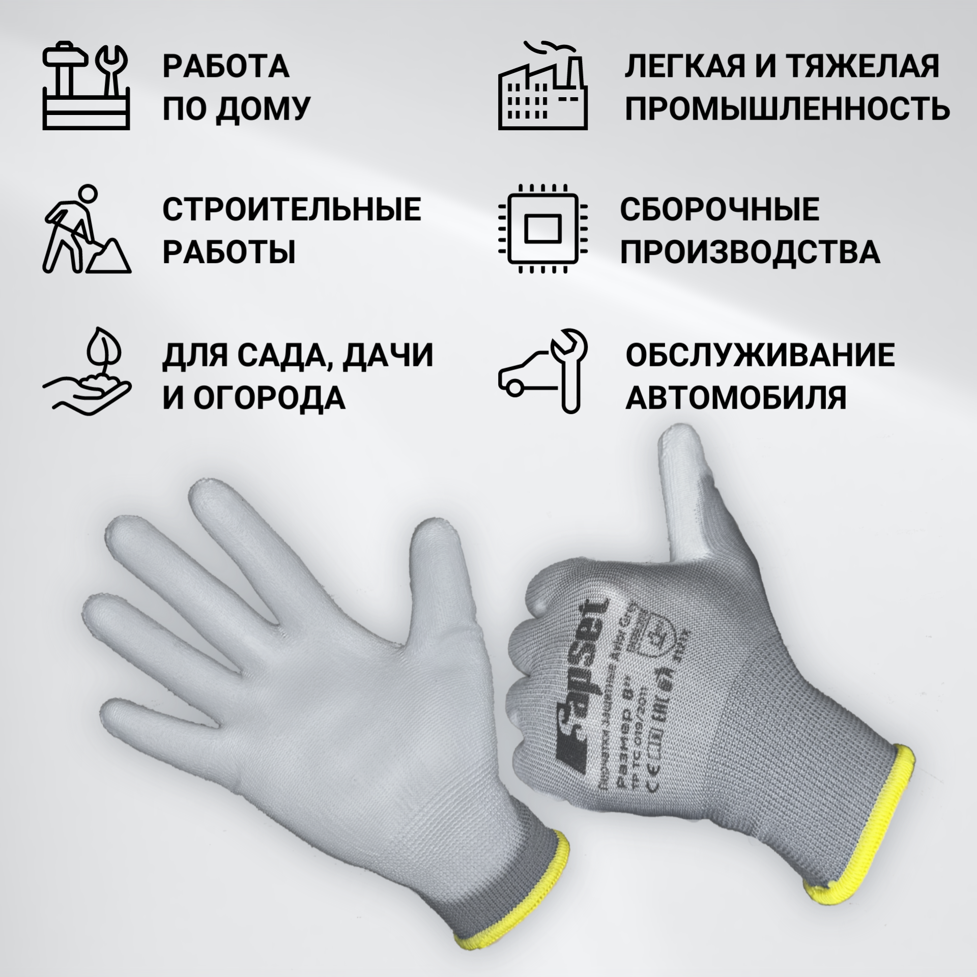 Перчатки рабочие Sapset Avior Grey с покрытием из полиуретана, размер XL/10 - 5 пар