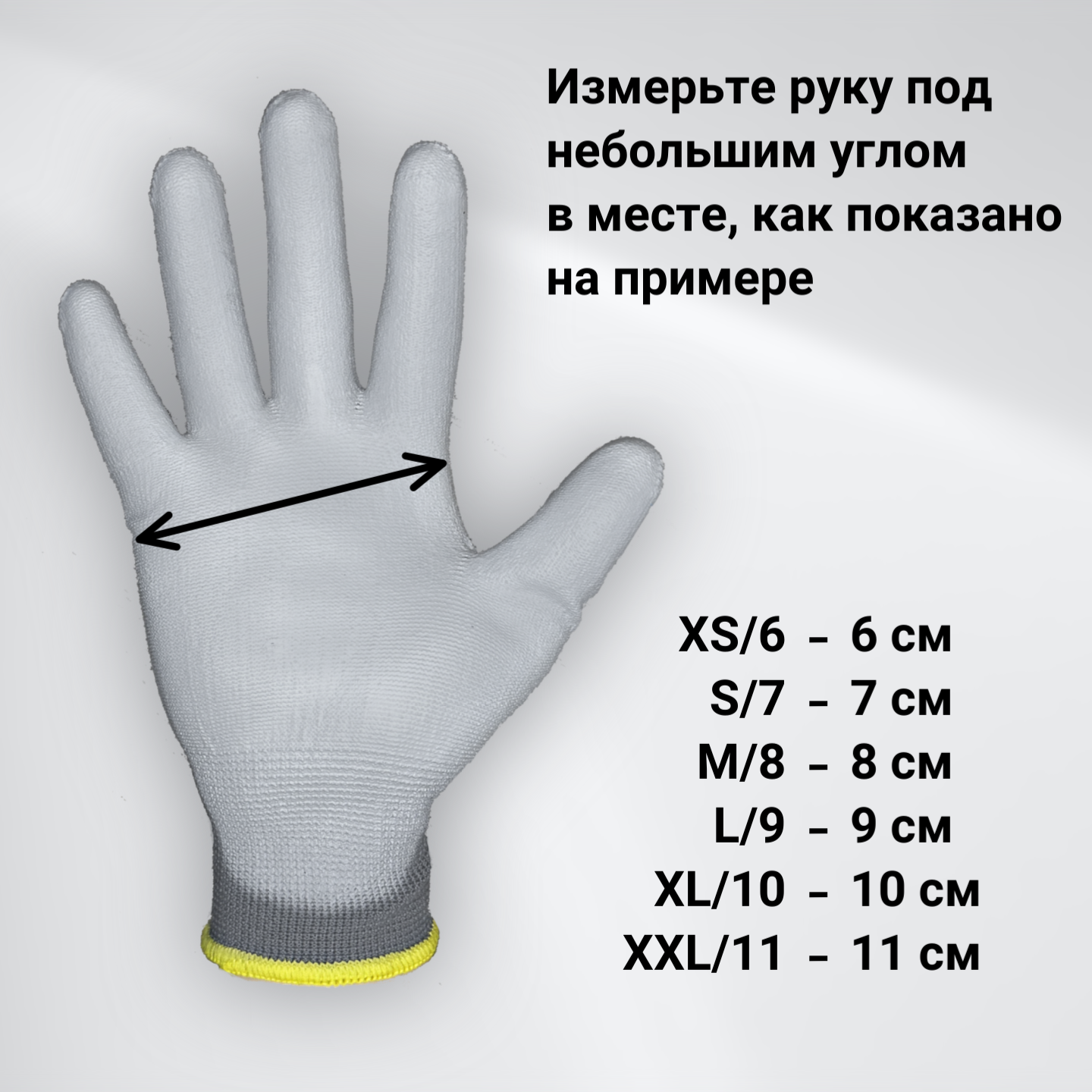 Перчатки рабочие Sapset Avior Grey с покрытием из полиуретана, размер XS/6 - 5 пар