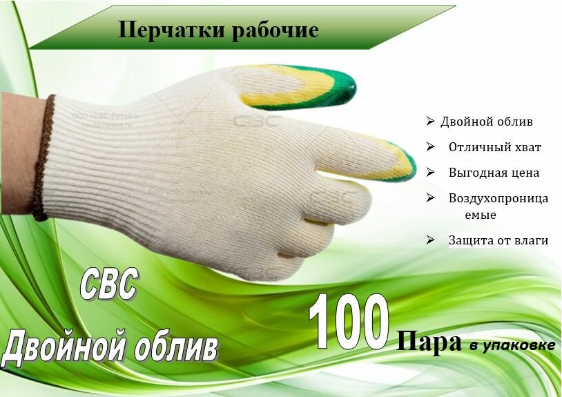 Перчатки СВС х/б с двойным латексным обливом 50 пар
