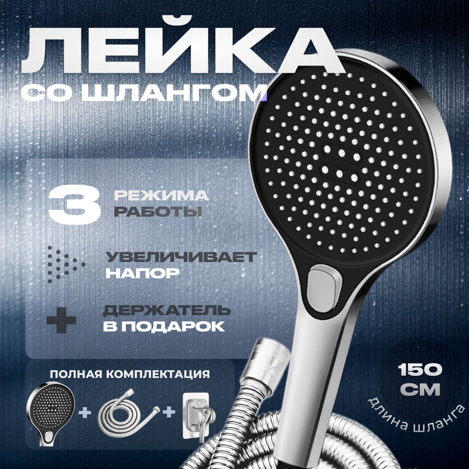 Лейка для душа со шлангом 1,5 м водосберегающая, 3 режима, держатель для лейки, душевой комплект серебристый интересное: