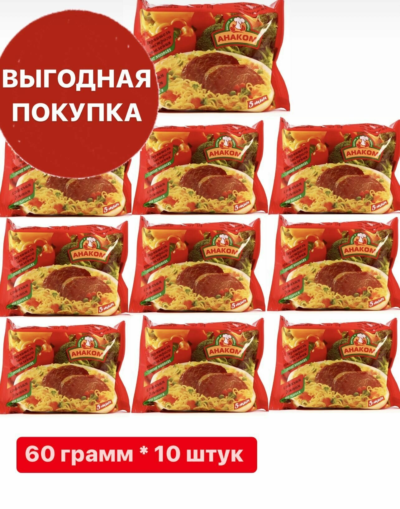 Вермишель быстрого приготовления Анаком с говядиной/ 60 грамм / 10 штук интересное: