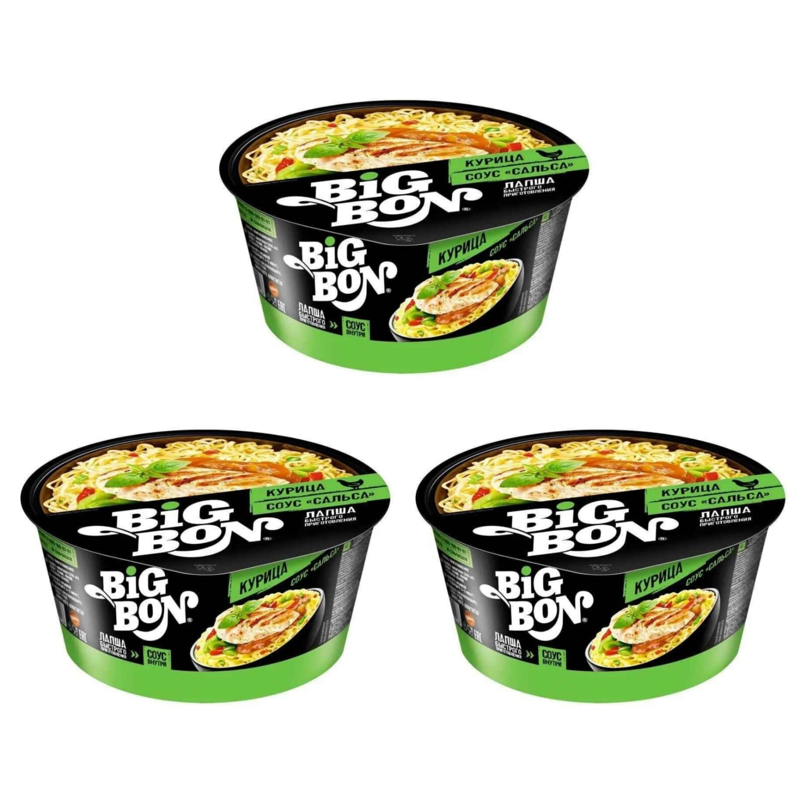 Купить Лапша Big Bon Курица и соус сальса 85 г 3 шт