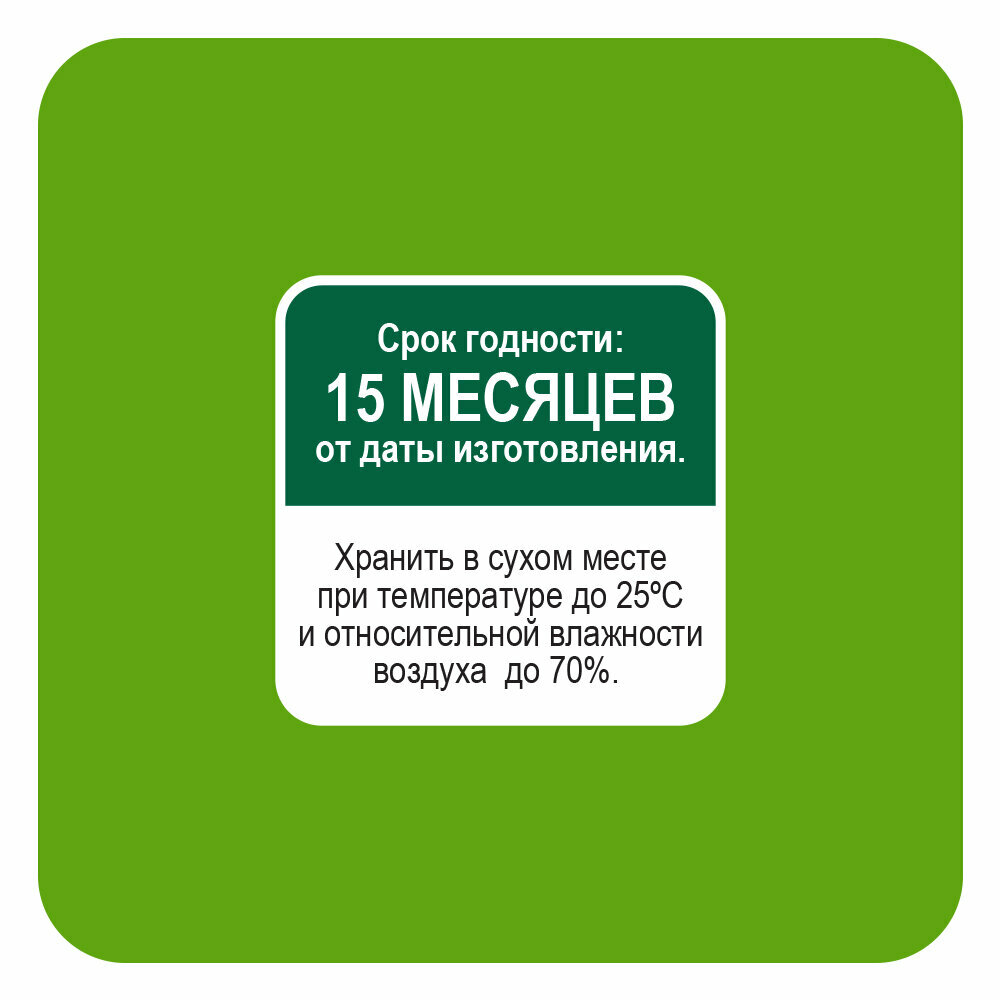 | Условия хранения | Хранить в сухом месте, при температуре до 25°С и относительной влажности воздуха до 70% |