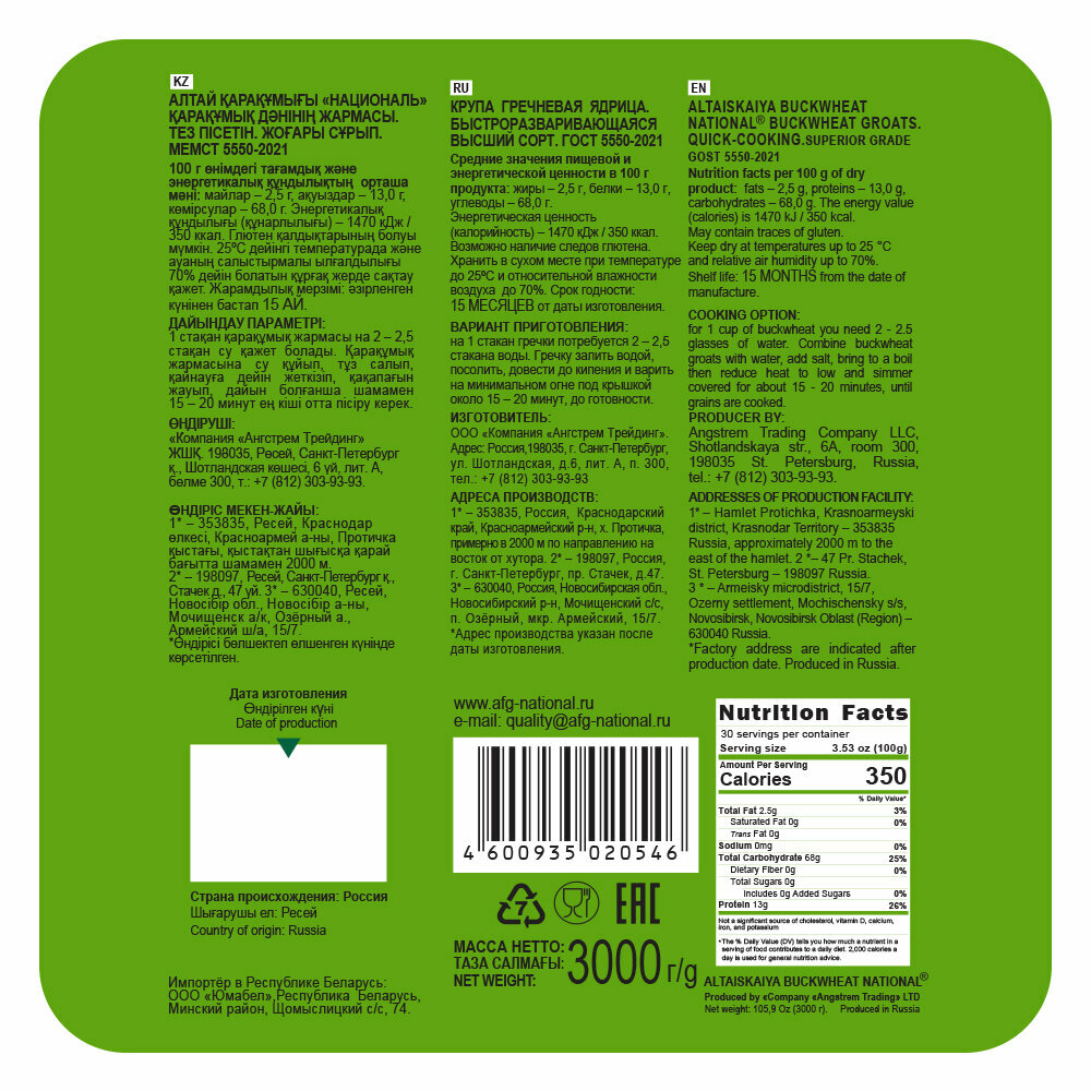 Гречка алтайская ядрица "Националь" 3 кг интересное: