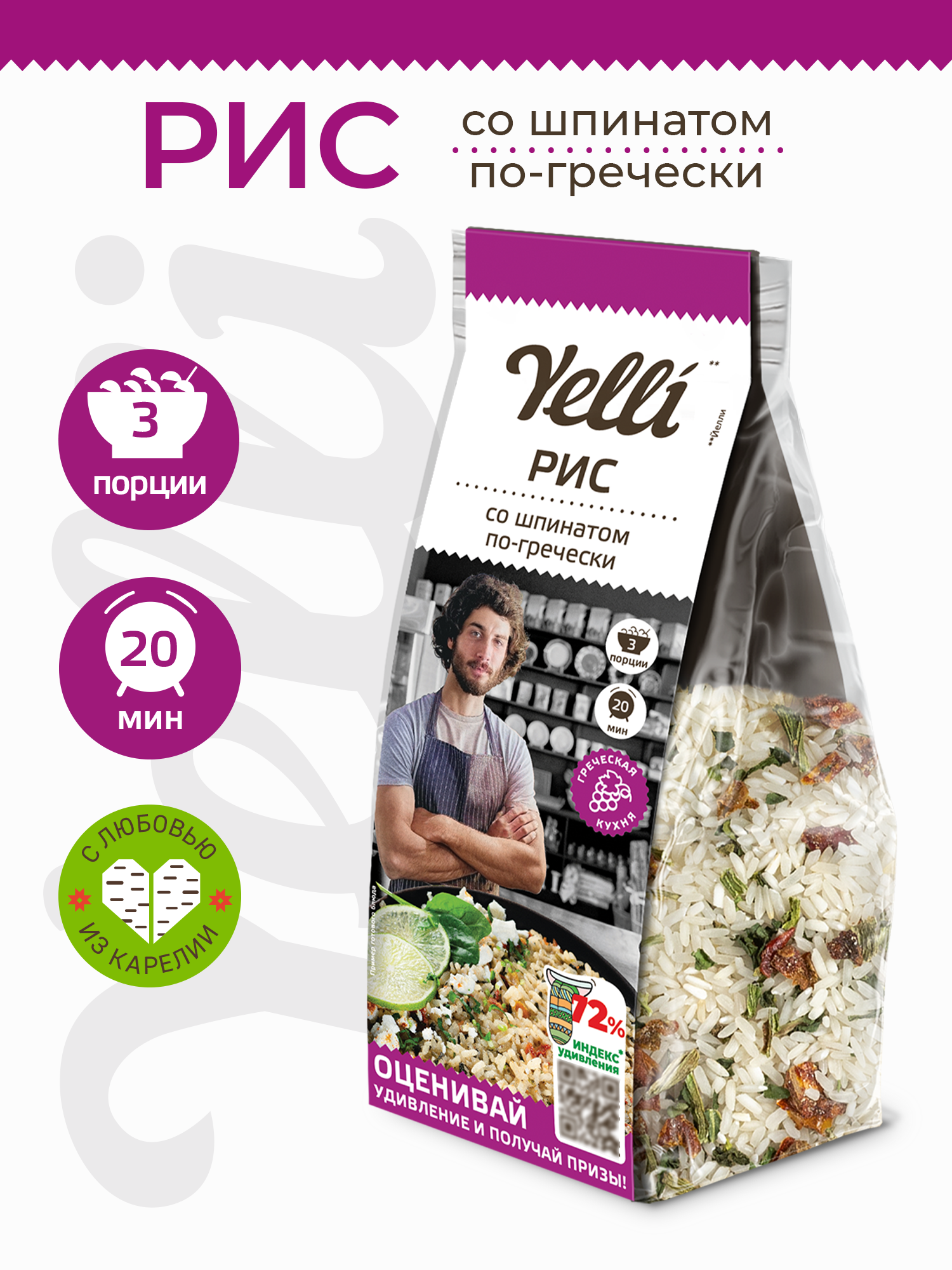 Купить Рис со шпинатом по-гречески Yelli 190г/ Смесь для приготовления второго блюда