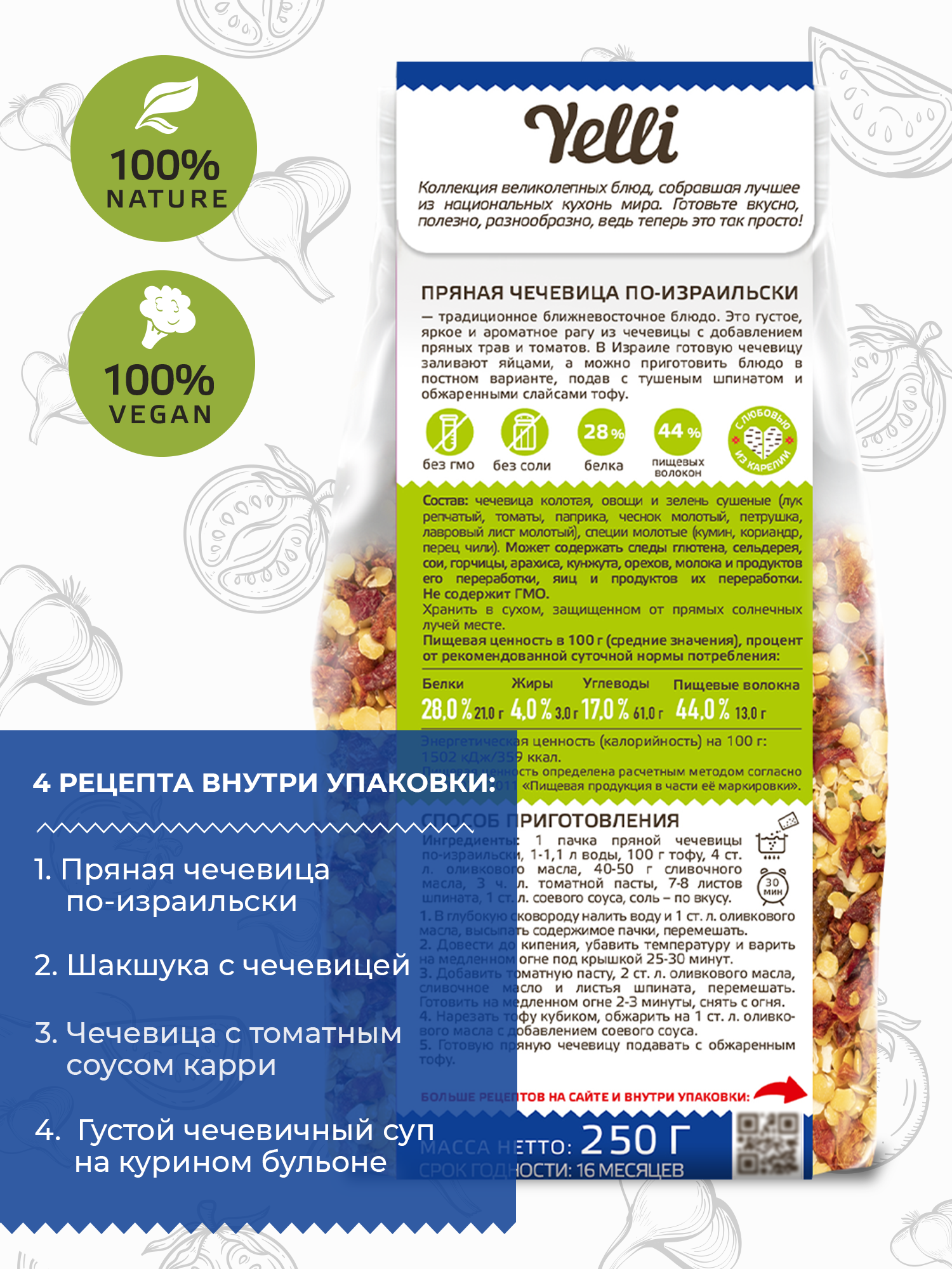 Пряная чечевица по-израильски Yelli 250г интересное: