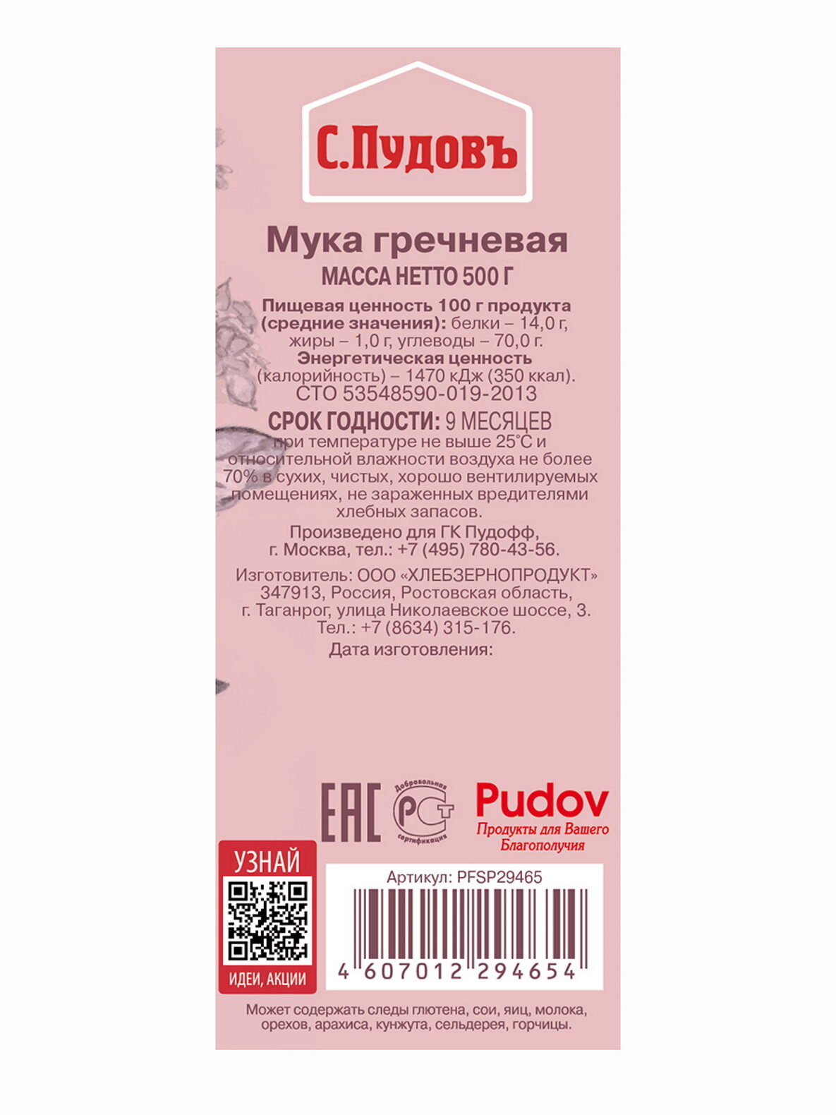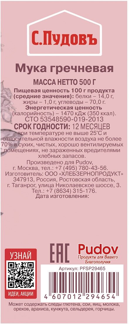 Мука гречневая С.Пудовъ, 500 г интересное: