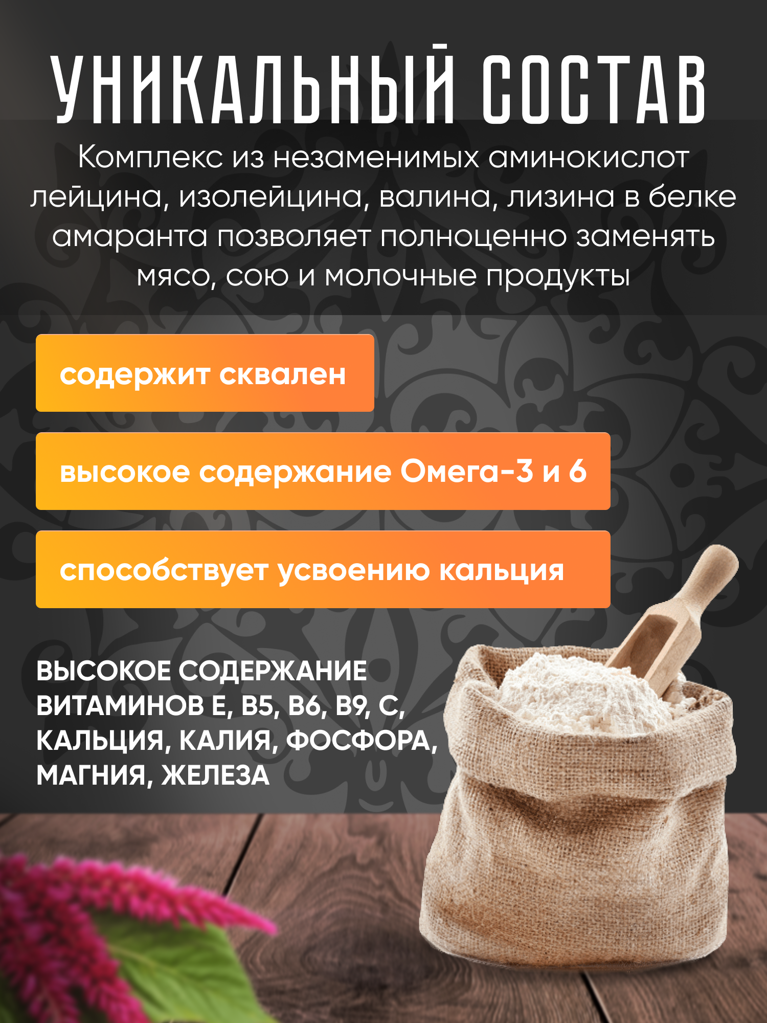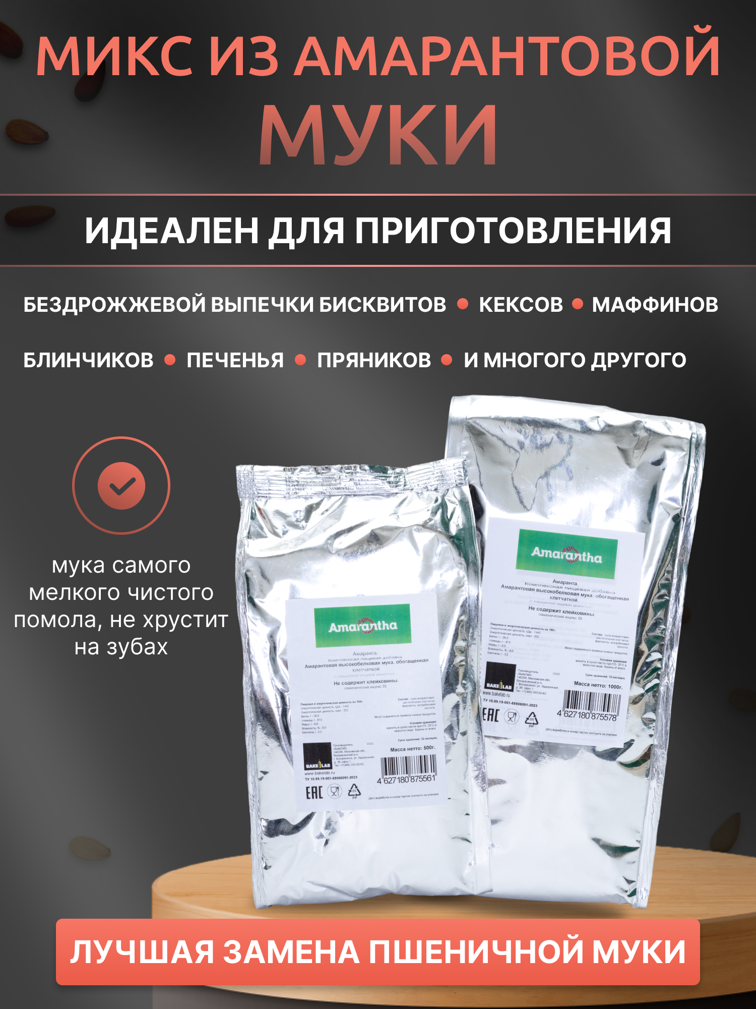 Мука амарантовая без глютена «Амаранта» с высоким содержанием белка 26%, 500 г. (смесь для выпечки) интересное: