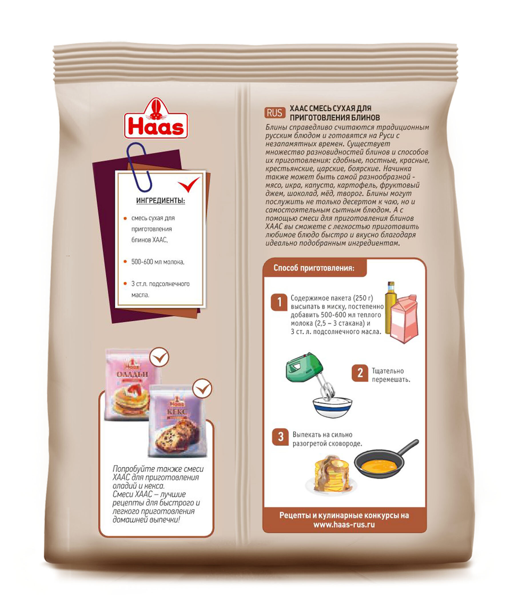 HAAS Сухая смесь для блинов. Хаас Блины, 250г интересное: